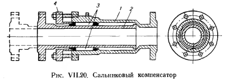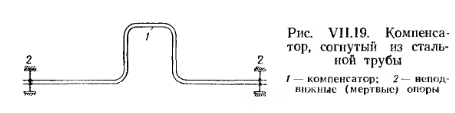 КОМПЕНСАТОРЫВ некоторых насосных системах отопления (например, в отопительных системах производственных помещений) вода может иметь температуру выше 95°С и даже 130—150°С. При таких температурах длина трубопроводов значительно увеличивается — примерно на 1,5—2 мм на каждый метр. Более точно величину удлинения в см определяют по формуле ![]() В ряде случаев такое удлинение может привести к повреждению трубопровода (разрывам в соединениях, искривлению и др.). Для восприятия этих удлинений служат компенсаторы, которые устанавливают на прямых участках большой протяженности. Компенсаторы бывают П-образного вида, согнутыми из труб (рис. VII.19) и сальниковыми (рис. VII.20) Их устанавливают между двумя «мертвыми» точками, т. е. между двумя опорами, неподвижно закрепляющими трубопровод. ![]() Наибольшее распространение получили П-образные компенсаторы, надежные в работе и не требующие ухода. Чтобы избежать скопления воздуха в этих компенсаторах, их устанавливают в горизонтальной плоскости, параллельно оси трубопровода. ![]() Сальниковый компенсатор (рис. VII. 20) состоит из корпуса 1, в котором перемещается стакан 2. Для устранения утечки воды между стенками корпуса и стакана служит сальниковая набивка 3, которая поджимается грундбуксой 4. При удлинении трубопровода стакан вдвигается в корпус, а при охлаждении трубопровода — выдвигается. По сравнению с П-образными сальниковые компенсаторы занимают мало места, но требуют ухода, так как в процессе эксплуатации их приходится подтягивать и периодически заменять сальниковые набивки. Компенсирующая способность сальниковых компенсаторов— от 100 до 200 мм. Их устанавливают, как правило, в стесненных местах на трубах диаметром от 100 мм и выше. Михайлов Федор Семенович ОТОПЛЕНИЕ И ОСНОВЫ ВЕНТИЛЯЦИИ - М.: Стройиздат, 1972. |