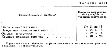 КРАТКИЕ СВЕДЕНИЯ О ПНЕВМАТИЧЕСКОМ ТРАНСПОРТЕПеремещение различного рода размельченных материалов и отходов производства (древесной пыли, стружек, песка, наждачной пыли и др.), осуществляемое воздушным потоком, называют пневматическим транспортом. Обычная установка для пневматического транспорта состоит из приемников, забирающих производственные отходы в местах их выделения, сети отсасывающих воздуховодов, центробежного вентилятора и оборудования для очистки воздуха от пыли. В качестве последнего применяют циклоны, если транспортируются древесные отходы, песок, молотая глина и пр., и матерчатые фильтры или мокрые скрубберы при транспортировании наждачной пыли и прочих мелких материалов. Если вентилятор установлен до очистительного оборудования, то перед ним ставят уловитель для крупных отходов. Воздуховоды для пневматического транспорта изготовляют из более тяжелой листовой стали, чем обычные вентиляционные воздуховоды, а приемные местные отсосы из стали толщиной не менее 2 мм, так как они подвержены большому износу абразивными частицами. На ответвлениях воздуховодов к местным отсосам установки пневмотранспорта задвижки (шиберы) устанавливают только на время регулирования системы, а после их пломбируют или совсем срезают вровень с поверхностью воздуховодов. Для очистки воздуховодов установки пневмотранспорта на горизонтальных участках предусматривают лючки, перекрываемые задвижками. Количество воздуха, отсасываемого из цеха системой пневмотранспорта, необходимо компенсировать соответствующим количеством наружного воздуха, подогреваемого в зимний период. Для удобства обслуживания воздуховодов системы пневмотранспорта, как правило, принимают верхнюю открытую разводку. Расчет пневмотранспортной установки состоит в определении количества транспортируемого материала, необходимого расхода воздуха, установлении необходимых диаметров участков сети, подборе вентилятора и очистного оборудования. При определении расхода воздуха следует исходить из весовой концентрации смеси, принимая скорости потока воздуха по данным табл. XXI.1. Весовой концентрацией смеси р называют отношение веса примесей в единице объема чистого воздуха к весу этого объема. При определении потерь давления на участках воздуховодов и величины полного давления, необходимого для подбора вентилятора, исходят как из весовой ¦концентрации смеси, так и из характера примесей к воздуху, учитываемого опытным коэффициентом К. Значение этого коэффициента различно для каждого вида отходов. Например, для древесных опилок и стружек /( = 0,4, а для песка или молотой глины /( = 0,6. ![]() Таким образом, с учетом К и весовой концентрации давление в воздуховодах системы пневмотранспорта, необходимое для транспортирования смеси, определяют по формуле ![]() Подробные сведения о пневматическом транспорте приводятся в специальной литературе, например, в книге М. П. Калинушкина, 3. Э. Орловского, И. С. Сегаль «Пневматический транспорт». Госстройиздат, 1961. Михайлов Федор Семенович ОТОПЛЕНИЕ И ОСНОВЫ ВЕНТИЛЯЦИИ - М.: Стройиздат, 1972. |