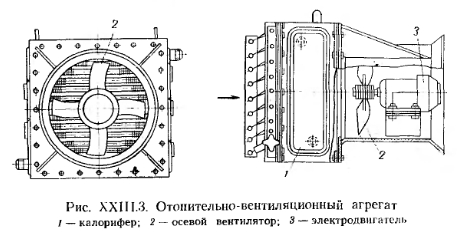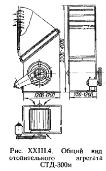 ОТОПИТЕЛЬНО-ВЕНТИЛЯЦИОННЫЕ АГРЕГАТЫТипы и характеристики отопительно-вентиляционных агрегатов. Отопительный агрегат состоит из калорифера, осевого или центробежного вентилятора, электродвигателя и устройств для забора и выпуска воздуха. Для изменения направления потока воздуха агрегат имеет направляющие лопатки. Такие агрегаты в децентрализованных системах отопления устанавливают в самих отапливаемых помещениях. На рис. XXII 1.3 для примера показан отопительный агрегат с осевым вентилятором. ![]() В отличие от обычных вентиляционных установок, где калорифер, как правило, принято устанавливать до вентилятора, в отопительных агрегатах калорифер размещают за вентилятором (не на подсосе, а на нагнетании воздуха). Такое расположение калорифера несколько увеличивает его теплоотдачу. Теплопроизводительность агрегатов в зависимости от установленных в них калориферов и вентиляторов может изменяться в широких пределах. Отопительные агрегаты устанавливают на консольных площадках у наружных стен (часто в оконных простенках), на колоннах или непосредственно на полу отапливаемого помещения, иногда их можно подвешивать к балкам перекрытий. В настоящее время промышленность изготовляет отопительные агрегаты моделей АПВС и АПВ. ![]() Для систем воздушного отопления с сосредоточенной подачей воздуха иногда применяются укрупненные отопительные агрегаты типа СТД-ЗООм с центробежным вентилятором (рис. XXIII.4). Михайлов Федор Семенович ОТОПЛЕНИЕ И ОСНОВЫ ВЕНТИЛЯЦИИ - М.: Стройиздат, 1972. |