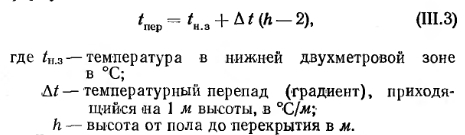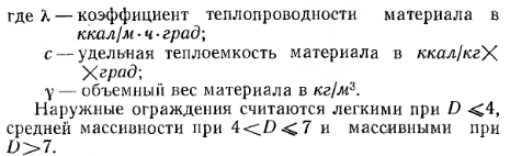 РАСЧЕТНЫЕ ТЕМПЕРАТУРЫ НАРУЖНОГО И ВНУТРЕННЕГО ВОЗДУХА ПРИ ОПРЕДЕЛЕНИИ ТЕПЛА, ТЕРЯЕМОГО ПОМЕЩЕНИЯМИПри определении потерь тепла (теплопотерь) помещениями зданий за расчетную наружную температуру принимают среднюю температуру воздуха наиболее холодной пятидневки в данной местности. Эта расчетная температура значительно выше, чем абсолютная минимальная температура в данной местности. Так, для Москвы она принимается равной — 26°С, тогда как абсолютная минимальная температура доходит до —41°С (для Ленинграда соответственно — 24°С против — 36°С). Теплотехнический расчет наружных -ограждений по минимальной температуре, которая наблюдается всего в течение нескольких часов и один раз за несколько лет, нецелесообразен по экономическим соображениям. Кроме того, строительные ограждения обладают большой тепловой инерцией (т. е. способностью сохранять тепло), благодаря которой кратковременное понижение наружной температуры не вызывает заметного понижения внутренней температуры воздуха в помещении. Несколько иначе определяется расчетная зимняя температура наружного воздуха в зависимости от степени массивности ограждающих конструкций здания, влияющей на их промерзание (см. СНиП II-A.7-62 «Строительная теплотехника»). Так, при расчете «массивных» ограждений в качестве расчетной наружной температуры принимается средняя температура наиболее холодной пятидневки, при «легких» — уже более низкая температура, т. е. средняя для наиболее холодных суток, а при ограждениях «средней массивности» — средняя из приведенных выше двух температур. Степень массивности наружных ограждающих конструкций характеризуется величиной их тепловой инерции D, вычисляемой по формуле ![]() ![]() Для перекрытий над холодными подвалами и подпольями расчетную зимнюю температуру наружного воздуха принимают равной средней температуре наиболее холодной пятидневки независимо от степени массивности перекрытия. Для определения расчетных температур наружного воздуха можно пользоваться приложением 3. Внутренняя расчетная температура определяется назначением помещения и должна поддерживать нормальное самочувствие человека. При ее выборе учитываются условия пребывания и деятельности человека в помещении, величина тепло- и влаговыделений, а также возможность возникновения конденсации влаги из воздуха на внутренних поверхностях ограждений. В помещениях жилых зданий температура внутреннего воздуха принимается равной 18°С, в детских комнатах (яслях, детских садах и др.) и больничных помещениях— от 18 до 25°С, в служебных помещениях (учреждениях, аудиториях и др.) от 16 до 18°С (в зависимости от скопления в них людей), в производственных помещениях — в соответствии с санитарными требованиями и учетом условий труда и технологического процесса. Так, при легкой работе принимают температуру 16°С, а при тяжелой 12°С. В нерабочее время внутренняя температура в производственных помещениях допускается равной 5°С. В некоторых промышленных предприятиях (прядильно-ткацком, полиграфическом) требуется поддерживать такую внутреннюю температуру воздуха, которая определяется требованиями технологического процесса. В этих случаях для создания нормальных условий труда приходится устраивать вентиляцию. За расчетную внутреннюю температуру помещений принимают температуру во