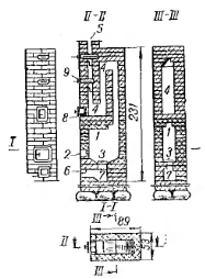 ВИДЫ СИСТЕМ ОТОПЛЕНИЯОсновными элементами любой системы отопления являются генератор тепла, нагревательные приборы и теплопроводы (каналы или трубопроводы). В генераторе тепла происходит сжигание топлива, а выделяемое при этом тепло передается теплоносителю, т. е. среде, переносящей тепло от генератора к нагревательным приборам. Нагревательные приборы передают полученное от генератора тепло воздуху помещений. По теплопроводам теплоноситель перемещается от генератора тепла к нагревательным приборам. Системы отопления подразделяются на местные и центральные. В местной системе отопления генератор тепла, нагревательные приборы и теплоотдающие поверхности конструктивно объединены в одном устройстве. Примером местного отопления может служить комнатная печь (рис. 1.1). В ней генератором тепла является топливник, в котором происходит сгорание топлива, теплопроводом служат дьшообороты, прогревающие стенки печи и отводящие продукты сгорания из топки, а воздух помещений нагревается при его непосредственном соприкосновении с горячими поверхностями стенок печи. К местным системам отопления относятся также газовое отопление (при сжигании газа в нагревательных приборах, находящихся в отапливаемом помещении) и электрическое, если электрическая энергия переходит в тепловую непосредственно в самих нагревательных приборах. Радиус действия местных систем отопления невелик и ограничивается одной или двумя-тремя смежными комнатами. ![]() Центральными системами отопления называются системы, в которых генератор тепла (например, котел) находится вне отапливаемых помещений, а теплоноситель к местам потребления подается по трубопроводам. В центральных системах отопления одним генератором тепла, состоящим из одного котла или группы котлов, могут отапливаться не только отдельное здание, но и группы зданий. Система отопления, которая обслуживает целую группу зданий от одной котельной, называется районной. В зависимости от вида теплоносителя центральные системы отопления подразделяются на системы водяного, парового, воздушного и комбинированного отопления. Если в системе водяного отопления циркуляция воды в трубопроводах и нагревательных приборах происходит под действием разности объемных весов охлажденной и нагретой воды, то она называется системой с естественной циркуляцией. В системах большой протяженности применять естественную циркуляцию воды экономически нецелесообразно, так как это привело бы к необходимости установки труб слишком больших диаметров. Поэтому в этих случаях устраивают системы водяного отопления с искусственной циркуляцией воды при помощи насосов (пли насосные). Эти системы отопления в качестве теплоносителя могут использовать воду с температурой до 100° С или высокотемпературную воду (с температурой более 100° С). В системах парового отопления пар из котла по трубопроводам поступает в нагревательные приборы, где конденсируется ,и, выделяя скрытую теплоту парообразования, нагревает эти приборы. Конденсат же возвращается в котел и вновь превращается в пар. Системы парового отопления различаются по величине первоначального давления и бывают вакуум-паровыми (сдавлением пара от ат), низкого давления (от 0,5 до 0,7 ати) и высокого давления (более 0,7 ати). В системах парового отопления пар перемещается под