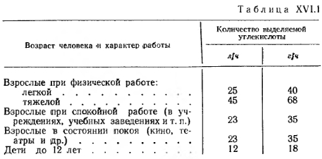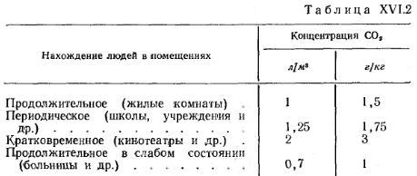 ВРЕДНЫЕ ВЫДЕЛЕНИЯ И ПРЕДЕЛЬНО ДОПУСТИМЫЕ КОНЦЕНТРАЦИИ ИХ В ВОЗДУХЕ ПОМЕЩЕНИИК основным вредным выделениям в жилых и общественных зданиях относятся углекислый газ и избытки тепла и влаги, а в производственных помещениях к тому же еще пыль и вредные газы. В табл. XVI. 1 приводится количество углекислоты СО2, выделяемой за 1 ч людьми в зависимости от их возраста и состояния. ![]() Количество вредных выделений в производственных помещениях во многом зависит от технологического процесса, а также от эффективности устройства укрытий и местных отсосов воздуха. Пыль в этих помещениях образуется при всякого рода дроблении, размоле и просеивании твердых веществ, а также при очистке, заточке и шлифовке всевозможных металлических изделий на станках. Вредность пыли зависит от ее состава и размера. Наиболее опасна мелкая пыль, размерность которой около 5 мк (микрон), так как она глубоко проникает в дыхательные пути человека. Количество вредных выделений иногда устанавливают опытным путем. Так, опытным путем было установлено, что в литейных цехах на 1 т чугунного литья выделяется около 100 тыс. ккал тепла и 1,8 кг окиси углерода (СО), а в газосварочных мастерских на 1 кг сжигаемого ацетилена приходится 200 г СО. К вредным выделениям, опасным для человека, относится содержание в воздухе таких веществ, как двуокись кремния, кварц, асбест, карборунд и пр. Весьма опасно для человека и загрязнение воздуха радиоактивными веществами. Содержание газов, паров и пыли в помещении не должно превышать значений так называемых предельно допустимых концентраций. Под предельно допустимыми концентрациями подразумевается содержание в воздухе таких вредных выделений и в таком количестве, которые не вызывают болезненных явлений даже при длительном их воздействии на человеческий организм. В табл. XVI.2 для примера приведены значения предельно допустимых концентраций С02. Содержание углекислоты С02 в наружном воздухе больших городов составляет 0,5, а в небольших — 0,4 л/м3. ![]() Предельно допустимые концентрации газов, паров и пыли приведены в табл. 3 СНиП Н-Г.7-62. Михайлов Федор Семенович ОТОПЛЕНИЕ И ОСНОВЫ ВЕНТИЛЯЦИИ - М.: Стройиздат, 1972. |