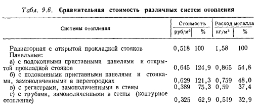 ТЕХНИКО-ЭКОНОМИЧЕСКИЕ ДАННЫЕ СИСТЕМ ОТОПЛЕНИЯ С ГРЕЮЩИМИ ПАНЕЛЯМИСистемы панельного отопления имеют ряд преимуществ по сравнению с другими системами не только с гигиенической, но и с технико-экономической точки зрения. Эти системы хорошо отвечают современным требованиям индустриализации и полносборности строительства, позволяют получать значительную экономию металла, способствуют улучшению интерьера помещений. В системах радиаторного отопления расход металла на разводящие теплопроводы — примерно 30 %, а на радиаторы — 70 %. Трубчатые нагревательные элементы бетонных панелей требуют значительно меньше металла. Это положение иллюстрируется табл. 9.5. Индустриальность монтажа систем панельно-лучистого отопления зависит как от тина применяемых приборов, так и от степени заводской готовности изделий. Эти факторы влияют па величину трудозатрат при монтаже системы. По данным многих организаций, трудозатраты на монтаж систем панельного отопления по сравнению с радиаторными снижаются от 20 до 45 %, а общая стоимость систем — до 30 %. При современных темпах и размахе строительства это дает значительные преимущества системам панельно-лучистого отопления (см. табл. 9.6). ![]() ![]() Дальнейшее развитие и более широкое применение систем панельно-лучистого отопления в практике строительства позволит уточнить приведенные показатели, которые с течением времени должны улучшаться. |
