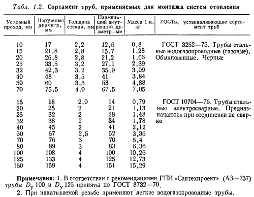 ТРУБОПРОВОДЫ И ЗАПОРНО-РЕГУЛИРОВОЧНАЯ АРМАТУРА СИСТЕМ ОТОПЛЕНИЯДля доставки теплоносителя от районной котельной или теплового центра здания к отопительным приборам применяют стальные трубы и стальные или из ковкого чугуна соединительные части (фитинги). Для возможности выключения отдельных участков теплопроводов или для изменения расхода теплоносителя по ним устанавливают запорно-регулировочную арматуру. ![]() Трубы, соединительные части и арматуру изготавливают разных диаметров и обозначают так называемыми условными проходами, которые указывают номинальный (но не фактический) внутренний диаметр. В соответствии с ГОСТ 355—67 условный проход обозначают буквами Dy с добавлением размера условного прохода в миллиметрах (например, Dy20, Dy32). Для монтажа систем отопления применяют стальные водогазопроводные (газовые) черные трубы легкие или обыкновенные с условными проходами от 15 до 50 мм (ГОСТ 3262—75) и стальные электросварные трубы с наружными диаметрами от 15 до 150 мм (ГОСТ 10704—76). Сортамент этих труб приведен в табл. 1.2. Стальные водогазопроводные обыкновенные трубы по ГОСТ 3262—75, имеющие значительную толщину стенки, предназначаются для соединения их на резьбе с помощью фитингов из ковкого чугуна, последние позволяют создавать прямые и разветвленные соединения при различных комбинациях диаметров. Для получения прочных и плотных соединений труб применяют специальную трубную цилиндрическую резьбу (ГОСТ 6357—73), плотность соединений которой при температуре теплоносителя до 105 °С достигается наличием сбега в конце резьбы и намоткой на резьбу льняного волокна (пропитанного свинцовым суриком, замешанным на натуральной олифе) перед навертыванием соединительной части или ленты из фторопластового уплотнительного материала (ФУМ). Для осуществления монтажа труб, а при необходимости и демонтажа в определенных местах необходимо устанавливать разъемные соединения, называемые сгонами. При этом одна из соединяемых труб должна иметь резьбу 3 такой длины, чтобы на нее можно было навернуть контргайку 4 (рис. 1.13) и муфту 2. После стыкования труб муфта 2 сгоняется с длинной резьбы на короткую резьбу 1 присоединяемой трубы. Для обеспечения плотности соединения около муфты 2 со стороны длинной резьбы наматывается жгут из льняного волокна, который затем прижимается контргайкой.. ![]() Разъем соединения производится в обратном порядке. В целях удешевления строительства и экономии металла с 1965 г. взамен обыкновенных стальных водогазопроводных труб с условными проходами от 15 до 70 мм начали применять стальные водогазопроводные тонкостенные черные трубы с Dy от 15 до 50 мм (но ГОСТ 3262—75) и стальные электросварные тонкостенные черные трубы с Dy от 50 до 150 мм (по ГОСТ 10704—76). Применение тонкостенных электросварных труб с Dy от 15 до 50 мм вместо обычных водогазопроводпых дает экономию металла порядка 20...25 % Для соединения тонкостенных труб малых диаметров применяют сварку или накатную цилиндрическую трубную резьбу, а для больших диаметров — сварку и фланцевые соединения. В качестве наиболее употребительной запорно-регулировочной арматуры в системах отопления применяют: краны пробковые, вентили запорные, клапаны обратное, задвижки параллельные, краны проходные дроссельные, краны регулирующие трехходовые, краны двойной регулировки и др. Перечисленная ар