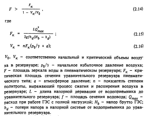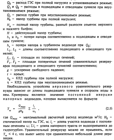 Для характеристики резервуара имеет большое значение режим затухания колебаний в резервуаре при наборе нагрузки. Эти характеристики определяются либо графоаналитическим, либо аналитическим методом расчета устойчивости при применении нагрузки на ГЭС, причем в последнем случае может быть наиболее вероятно установлено наличие так называемых предельных циклов. Следует учитывать, что в случае постоянства мощности, устанавливающейся после набора нагрузки, расход турбин определяется по формуле