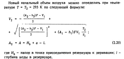 Расчет на набор нагрузки. При установившемся режиме работы объем воздуха в резервуаре зависит от его температуры. Для определения наинизшего положения уровня воды нужно рассмотреть случай высоких температур и максимального коэффициента шероховатости, т.е. больший объем воздуха в резервуаре.
