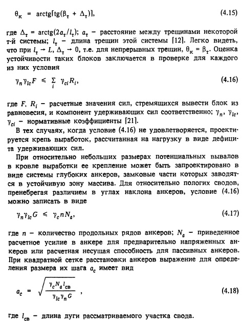 В тех случаях, когда условие (4.16) не удовлетворяется, проектируется крепь выработок, рассчитанная на нагрузку в виде дефицита удерживающих сил.