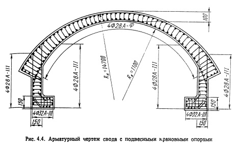 В железобетонном своде для соединения его со стенами при разработке верхней части камеры оставляют выпуски арматуры, которые утапливают в образуемую перед бетонированием свода песчаную подушку под пятами.