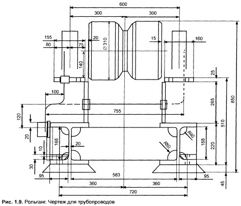 1) выпуск продукции требуемого качества в заданных номенклатуре и объемах при минимальных отходах обрабатываемого материала и минимальных затратах на функционирование системы (расходах по переделу); Принятие проектного техникотехнологического (технетического) решения зависит от стадии проектирования. Рассмотрев назначение и состав производственных цехов металлургического завода, можно определиться, если так можно выразиться, с местонахождением проектировщика в иерархии отрасль — единичное оборудование, с необходимым для принятия решения объемом знаний Металлургический завод занимает ключевое место в существующей иерархии: мировое производство черной металлургии; черная металлургия России (отрасль); подотрасль (лист, сорт, спец сталь, метизы, кокс и др.); предприятие (организация, комбинат, завод, фабрика); производство (доменное, сталеплавильное, прокатное и др.); цех; отделение; участок; единичное оборудование (машина, механизм и другая техника; единичная установка), единичная технология, единичный используемый материал (сырье), единичная продукция, единичный выброс (экологическое воздействие). Остановимся на единичном. На рис 1.8 приведен рабочий чертеж единичной продукции — профиля рельса, а на рис 1.9 уже рабочий чертеж узла — рольганга для присоединения трубопроводов смазки. Важно, что чертежи продукции (как и технологии) проектировщики, о которых идет речь (проектировщики заводов) не разрабатывают. Для них оборудование (например, силовой шкаф, рис. 1.10), технология, сырье и материалы — исходные данные. Что касается второго чертежа, то он уже разрабатывается на стадии рабочей документации (рабочих чертежей).