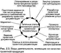 ОРГАНИЗАЦИЯ ПРОЕКТИРОВАНИЯ И ПРОГРАММА КАЧЕСТВАДо 1990 г. деятельность большинства проектных организаций и основной объем их работ сводились к выполнению рабочих чертежей (рабочей документации). Некоторую долю составляло выполнение ТЭО (технических проектов, проектов как стадии). Еще меньшую часть, за исключением головных проектных институтов, составляли работы, связанные со Схемой развития и размещения предприятий отрасли и другими подобными работами на перспективу от пяти до двадцати лет. Переход к рыночным отношениям изменил содержание проектной деятельности, потребовал ее расширения и поставил как ключевую проблему качества. Изменились наименование и области проектных услуг (табл. 2.1). Виды деятельности, влияющие на качество проектной продукции (рис. 2.3), образовали неоканчивающийся цикл, который вписывается в общую схему техноэволюции. На каждом этапе обнаруживается специфика, с учетом которой должно обеспечиваться качество, удовлетворяющее заказчика и государство. В рамках общей организационной структуры проектной организации должны быть определены все функции, касающиеся управления качеством проектной продукции, и установлены соответствующие должностные лица, отвечающие за выполнение этих функций. При этом должны быть установлены границы полномочий ответственных лиц, формы и каналы передачи информации в рамках системы качества данной организации. Руководство проектной организации должно определить и документально зафиксировать цели и обязательства, относящиеся к таким основополагающим показателям качества инвестиционного проекта, как функциональная пригодность, эксплуатационные характеристики, устойчивость, экологичность, надежность и безопасность строительного объекта.