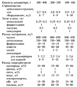 Общее в решениях по конвертерным мехамВ мире насчитывается более 250 цехов с конвертерами разной емкости (в России — 8 цехов). Различия цехов обусловлены прежде всего изменением объема производства, сортаментом выплавляемой стали, особенностями генерального плана завода. Предпринимавшиеся в стране и за рубежом попытки повторного применения разработанных проектов цехов изза техноценологических ограничений не увенчались успехом. Хотя все цехи в мире строились по индивидуальным проектам, изучение результатов строительства и эксплуатации позволяет выявить некоторые закономерности, общие для большинства известных объектов. Укрупненные показатели конвертерных цехов: