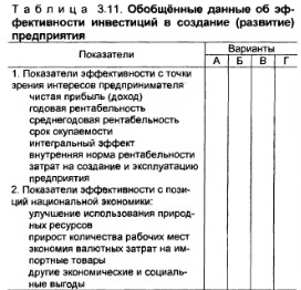 Порядок разработки и состав бизнеспланаБизнесплан — документ, разрабатываемый с целью уточнения сроков реализации отдельных инвестиционных проектов в рамках общей инвестиционной политики предприятия и обеспечения их финансовыми ресурсами. Бизнесплан разрабатывают на основании утвержденных обоснований инвестиций или проектной документации (проекта, рабочего проекта). Бизнесплан включает: анализ рынка продукции, производственную мощность и ее обеспеченность материальными, энергетическими, инвестиционными ресурсами, политику по использованию накоплений, источники собственных и заемных средств, оценку коммерческой и бюджетной эффективности. Бизнесплан разрабатывается в целях уточнения сроков реализации отдельных инвестиционных проектов в рамках общей инвестиционной политики предприятия и содержит: вводную часть, обзор состояния отрасли (производства) или предприятия — объекта инвестиционного проекта, производственный план проекта, план маркетинга и сбыта намечаемой к производству продукции, организационный и финансовый план реализации проекта, оценку эффективности, необходимых для реализации проекта затрат. Обычно бизнесплан сопровождается расчетными и аналитическими таблицами: производственной программой, расчетом выручки от реализации продукции, сводной ведомостью инвестиционных издержек, составом инвесторов и предполагаемых источников финансирования в предпроизводственный и производственный периоды, сроками и объемами погашения банковских кредитов, сводной ведомостью накладных расходов и производственных издержек, структурой себестоимости продукции (по экономическим элементам, расчетам чистой прибыли и налога на прибыль, движением потоков наличностей (проектнобалансовая ведомость доходов и расходов) в период строительства и эксплуатации предприятия, обобщенными данными об эффективности инвестиций в создание (развитие) предприятия (табл. 3.3—3.11). ![]() ![]() Расчетные и аналитические таблицы приводятся повариантно. На их основании, а также на основании материалованалогов и прогнозных ожиданий делаются общие выводы о преимуществах и выгодах предлагаемых решений по инвестициям. Рассматриваются недостатки вариантов решений по инвестициям и делается обший вывод с возможными рекомендациями. Таким образом, стандартный бизнесплан содержит следующие разделы: 1. Краткая характеристика состояния дел и принципиальные положения проекта.2. Вид деятельности и анализ продукции (оказываемых услуг). 3. Анализ рынка сбыта. 4. План действий, намечаемых для реализации проекта. 5. Финансовая характеристика проекта. В разделе “Краткая характеристика состояния дел” в сжатой форме излагается основная идея проекта и представляются обоснования — достаточно убедительные, но очень краткие подтверждения его положительных сторон и достоинств. Этот раздел, по существу, должен представлять резюме всего материала, и поэтому итогом его является прогноз результатов осуществления проекта с числовыми данными по прибыли, уровню рентабельности производства и ликвидности вложений, представленными применительно к принятым интервалам времени. В раздел “Вид деятельности и анализ продукции” должны быть включены данные об организациизаявителе, возможно нагляднее характеризующие ее деятельность, активы, историю, ц