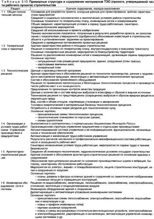 Техникоэкономическое обоснование (проект)Состав Техникоэкономического обоснования (или Проекта, или утверждаемой части рабочего проекта) менялся на протяжении всего времени проектирования объектов черной металлургии. В наиболее идеальном виде эту стадию можно соотнести проектному заданию — основному документу, руководствуясь которым были построены практически все заводы черной металлургии СССР. В то время техникоэкономическое обоснование являлось предпроектной стадией. С переходом к новой организации инвестиционного процесса ТЭО стали относить к проектному этапу (называемому “Проектирование объектов строительства”). ТЭО служит документом, на основе которого осуществляется подготовка рабочей документации. В свою очередь, основанием для разработки ТЭО служит утвержденное (одобренное) Заказчиком обоснование инвестиций и утвержденное местной администрацией решение о предварительном согласовании места размещения объекта. Общая схема организации и разработки ТЭО (проекта, утверждаемой части рабочего проекта) приведена в табл. 3.12, а в табл. 3.13 — примерная структура и содержание материалов ТЭО строительства, детализируемые далее применительно к ТЭО объектов черной металлургии. Таким образом, базовым документом пакета обосновывающих материалов инвестиционного проекта является техникоэкономическое обоснование (ТЭО) или, следуя международной терминологии, ТЭО в качестве завершающего документа пакета feasibility study материалов, обосновывающих осуществимость и эффективность инвестиционного проекта, базируется на принятых заказчиками и одобренных потенциальными инвесторами коммерческих предложениях и бизнес плане. В известной мере расширяя сферу обоснований. ТЭО должно учитывать новейшие научнотехнические достижения и передовой опыт работы близких по роду деятельности производств, а также перспективу развития техники в данной отрасли. В составе ТЭО должна быть четко обоснована организационноправовая форма (форма собственности) предприятия. Разработка ТЭО включает изучение ранее прорабатывавшихся вопросов реконструкции или модернизации предприятия, а также решений, которые принимались в перспективных материалах (схемах развития отрасли, в частности черной металлургии, программах технического перевооружения и реконструкции и т.д.). Как сводный комплексный документ ТЭО охватывает вопросы рационального использования территории, природных, сырьевых, материальных, энергетических и трудовых ресурсов, а также строительства объектов производственного, социальнобытового назначения, включая строительство жилья, и охраны окружающей среды. ![]() В состав ТЭО входят три блока вопросов, образующих разделы технологический и экономический, строительноконструкторский, финансовоэкономический. ![]() Технологоэкономические разделы ТЭО освещают следующий круг вопросов: Блок вопросов, относящихся к строительноконструкторскому комплексу, включает: ![]() ![]() Блок финансовоэкономических вопросов включает: Таким образом, техникоэкономические обоснования должны являться основанием для оформления разрешительной документации на строительство. Принимаемые в ТЭО решения по вопросам технологии и финансовоэкономической эффективности производства должны в течение всего хода работы регулярно рассматриваться и соглас