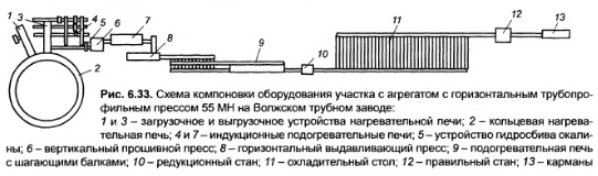 Преимущества процесса волочения — высокая производительность, хорошее качество получаемых труб, использование недорогого инструмента и сравнительная простота конструкций оборудования. Волочением можно получить трубы широкого сортамента разного профиля, в том числе такие, которые другими способами получить трудно или невозможно, например капиллярные, толстостенные малого диаметра, некруглые. Недостатки этого процесса — многоциклич ность (наибольшая деформация за один проход редко превышает 45 %), большое число вспомогательных операций и высокий расход металла по сравнению с расходом при холодной прокатке. Волочением производят трубы из углеродистых, легированных и нержавеющих сталей. В последнее время начали применять холодное редуцирование труб. Преимущества этого процесса — высокая производительность, возможность получения суммарной деформации до 50—60 %, а также изготовления труб малых диаметров (3—4 мм). Используют и сочетание прокатки на станах ХПТ с последующим холодным редуцированием. При создании поточных линий производства холоднодеформированных труб станы для прокатки и волочения компонуют в едином технологическом потоке с оборудованием термообработки, отделки и контроля. Однако в большинстве действующих цехов оборудование для холодной (теплой) деформации установлено отдельно стоящим и скомпоновано в специализированные участки. Состав оборудования участков холодной (теплой) деформации современного цеха зависит от сортамента труб и программы производства, размеров и качества исходной заготовки, а также от принятого технологического процесса изготовления труб. В зависимости от этих факторов на участках холодной деформации устанавливают станы холодной (теплой) прокатки, волочильные и редукционные, а также некоторые виды вспомогательного оборудования. Холодную (теплую) прокатку труб выполняют на станах периодического действия валкового (ХПТ) и роликового (ХПТР) типов. Разработан также ряд станов новых конструкций, которые пока еще не нашли широкого применения в трубной промышленности. В мировой практике широко распространены станы ХПТ. Деформация металла на них достигается перекатыванием калибров с рабочим ручьем переменного сечения по заготовке, внутрь которой введена коническая или криволинейная оправка, закрепленная на конце неподвижного стержня. Для холодной (теплой) прокатки характерна высокая пластичность деформируемого металла, которая обусловлена схемой напряженного состояния и дробностью деформации. Станы ХПТ в нашей стране изготовляет производственное объединение «Электростальтяж маш» (ПО ЭТМ). Оно выпускает станы ХПТ третьей модели правого и левого исполнений для холодной или теплой прокатки труб из стали и сплавов с ав < 1000 МН/м2 диаметром 16—90 мм из заготовки максимальной длиной 5 и 8 м, а также станы для прокатки труб диаметром до 450 мм. За рубежом крупнейший изготовитель станов ХПТ — фирма “Mannesmann Demag Меег” (Германия). Дальнейшее совершенствование конструкций станов ХПТ идет по пути увеличения быстроходности и уменьшения подвижных масс. Это достигается уменьшением диаметра рабочих валков при внедрении кольцевых калибров, использованием кассет с опорными валками, изготовлением клетей из легких сплавов, созданием многониточных станов, станов с последовательно распол