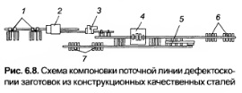 Участки подготовки исходного металлаВысокое качество готового проката и труб характеризуется однородностью механических и технологических свойств металла (прочностью, пластичностью, коррозионной стойкостью), отсутствием поверхностных дефектов (плен, рисок, закатов, остатков окалины, коробоватости) и нарушений сплошности (внутренних расслоений, трещин, пузырей, неметаллических включений), правильной формой и точностью размеров сечения по всей длине. Известно, что качество исходного металла во многом предопределяет качество готового проката и труб, так как большинство неудаленных дефектов заготовки сохраняется и на готовой продукции. Кроме этого, дефекты заготовки способствуют образованию дополнительных пороков при прокатке и значительному увеличению объема работ по ремонту готовой продукции Поэтому тщательная подготовка исходного металла имеет большое значение для получения качественного проката и труб и улучшения техникоэкономических показателей производства. Главная цель подготовки — возможно полное удаление дефектов исходной заготовки. В зависимости от сортамента и способа производства проката и труб, физикомеханических свойств металла и технических требований к готовой продукции в качестве исходной заготовки применяют слитки, катаные или непрерывнолитые блюмы, слябы и заготовку, кованую заготовку, центробежнолитые гильзы, горячекатаный штрипс и холоднокатаную ленту в рулонах, широкую горячекатаную полосу в рулонах и в виде листов мерной длины, а также горячекатаные трубы. В общем виде технологическая схема подготовки исходного металла заключается в том, что до передачи на участки производства проката и труб заготовку тщательно осматривают, при необходимости подвергая (автоматизированному) контролю на выявление дефектов, ремонту с удалением дефектов или участков с неисправимыми дефектами, делению на заданные длины. При производстве холоднокатаной листовой продукции, части проката из легированных сталей и сплавов, а также труб со специальными свойствами и параметрами подготовка исходного металла включает термическую, химическую и механическую обработку. Все эти технологические операции осуществляют как на участках подготовки заготовки, так и на специализированных участках химической и термической обработок. В ряде случаев, например при изготовлении специальных видов проката, сварных и бесшовных труб отдельных видов, часть операций по подготовке заготовки выполняют в линии стана. На металлургических предприятиях с несколькими прокатными переделами, когда конечная продукция одного передела является исходным металлом последующего, операции подготовки заготовки могут включаться (организационно) в технологический процесс отделки готового проката (полупродукта). Исходным металлом при производстве полупродукта — блюмов, слябов и заготовок в обжимных цехах являются слитки прямоугольного сечения. Слитки круглого или многогранного сечений применяют в качестве исходной заготовки при производстве труб на установках с пилигри мовыми станами в колесопрокатном производстве. Металл слитков должен быть химически однороден, иметь низкое содержание вредных элементов (главным образом серы и фосфора), газовых и неметаллических включений с глубоким залеганием подкорковых сотовых пузырей