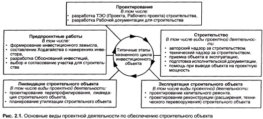 Четвертый этап — разработка проектной документации на строительство в составе его техникоэкономического обоснования (Проекта, утверждаемой части Рабочего проекта), согласование, экспертиза и утверждение проектной документации, получение на ее основе решения об изъятии под строительство земельного участка. Пятый этап — разработка Проектировщиком (или в раде случаев подрядной строительной организацией) Рабочей документации для строительства. Основные задачи этого этапа инвестиционного процесса — обеспечение: процессов строительного производства необходимой для качественного проведения работ технической документацией (чертежами, схемами, спецификациями, ведомостями материалов и оборудования, расчетами стоимости и т.п.); комплектующих организаций, предприятий разработчиков и поставщиков оборудования, изделий и материалов необходимой технической документацией, требующейся для возведения и оснащения строительного объекта в соответствии с принятыми проектными решениями, отраженными в утвержденной на предыдущем этапе проектирования проектной документации; процедур конкурсного отбора строительного подрядчика (Строителя), Поставщиков материалов, оборудования и формирование в этих целях соответствующей тендерной документации. Шестой этап — реализация инвестиционного проекта, в ходе которой происходит возведение (строительство, комплектация, монтаж и установка оборудования) объекта в соответствии с утвержденной проектной документацией, требованиями строительных норм, правил и других нормативов. Объект вводится в эксплуатацию, осуществляются пусконаладочные работы, набор и подготовка персонала, вывод на проектную мощность основных фондов предприятия. Проектное обеспечение строительства на данном этапе инвестиций включает авторский надзор при проведении строительных работ. Проектные организации могут также оказывать по инициативе Заказчика на основе договорных соглашений другие необходимые услуги. Например, управление инвестиционным проектом, технический надзор за строительством, надзор за проектированием и проектирование комплектующего оборудования, инженерных систем и установок, участие в сдачеприемке объекта, выводе его на проектную мощность. Седьмой этап — выпуск намечаемой продукции и/или оказание услуг в соответствии с общими целями инвестиционного проекта. В результате производственной и коммерческой деятельности Заказчик получает прибыль и окончательно рассчитывается с другими инвесторами, подрядчиками, поставщиками и кредиторами. Эффективная эксплуатация инвестиционного объекта (предприятия, здания, сооружения) предполагает поддержание в необходимом состоянии его основных фондов, для чего должны быть организованы и надлежащим образом управляться собственником объекта (Заказчиком, Пользователем, Арендатором) службы эксплуатации и обеспечения функционирования объекта. На данном этапе инвестиций по мере материального и морального износа основных фондов собственники объекта и службы эксплуатации должны организовывать необходимое проектноизыскательское обеспечение (проектное сопровождение) объекта, решая при этом задачи: Восьмой, заключительный этап — ликвидация и утилизация либо перепрофилирование данного предприятия, здания, сооружения на выпуск иной продукции