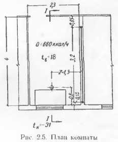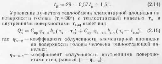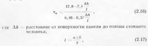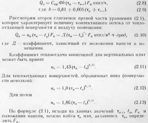 ЛУЧИСТО-КОНВЕКТИВНЫЙ ТЕПЛООБМЕН В ПОМЕЩЕНИИПри умеренной работе в нормальны условиях человек 50% излучением и 25% конвекцией. В диапазоне комфортных условий потерн тепла па испарение (УстаюIся почти постоянными. Соотношение же основных потерь тепла излечением и конвекцией, определяющее тепловой комфорт в помещении, зависит от способа обогрева. Определение комфортных условии, в значительной степени зависящих от температуры и соотношения размеров теплоотдающих и теплотеряющих ограждений, представляет некоторые затруднения. В литературе вопросы теплообмена и отапливаемых помещениях рассматривались многими авторами, но н практике проектирования из-за сложности и громоздкости вычислений предлагаемые расчета применялись лишь в редких случаях. В. II. Богословский [7, 32], обработав имеющиеся литературные данные [19], [28], [33], [II], [34], [35] н интегральные Уравнения теплообмена, приходит полностью пренебрегать учетом ту чисто-конвекционного теплообмена при расчете панельно-лучистого отопления, по можно существенно, степень сложности этих расчетов путем совместного решения уравнений, определяющих условия температурного комфорта и системы обогрева с помещением. а) температуры воздуха в помещении /в; б) температуры внутренней поверхности наружной стены или при заданной температуры теплоотдающей поверхности т„; в) температуры внутренних поверхностей необогреваемых ограждений, необходимой при определении условий комфорта. При разработке систем панельно-лучистого отопления стремятся выполнить их так, чтобы обеспечить в помещениях комфортные условия. При этом нужно, чтобы: а) конвективная теплоотдача человека была доминирующей; б) температуры теплоотдающих поверхностей в зависимости от их расположения не превышали допустимых величии; в) температура внутренней поверхности наружно! стены была не ниже, чем при конвективном отоплении. Эти условия, как указывалось, могут быть удовлетворены, если нужные параметры находить совместным решением уравнений лучистого и конвективного теплообмена всех поверхностей, ограждающих помещение Для этого можно использовать упрощенный метод, точность которого достаточна для практических целей. В. Н. Богословский предлагает следующее уравнение, определяющее теплообмен системы обогрева с помещением ![]() Рассмотрим компоненты, входящие в эту формулу. Коэффициент теплопередачи наружного ограждения от его внутренней поверхности к наружному воздуху к может быть найден по формуле ![]() Расчетная температура наружного воздуха 1„ принимается по СПнП тля проектирования отопления, поверхность наружной смены F„.c — по размерам внутри помещения. Приведенный коэффициент излучения теплообменивающихся внутренних поверх- ![]() ![]() ![]() ![]() ![]() ![]() ![]() ![]() По изложенной методике могут быть найдены допустимые температуры поверхностях капелей, вертикально. ![]() Расчет теплопотерь с учетом теплообмена в помещении с лучистым (потолочным) отоплением, проведенный, показывает, что разница в теплопотерях находится в пределах 5%. Л. К. Андреевский [37], анализируя переход тепла через ограждения при различных способах обогрева помещении, приходит к выводу, что: «отправной величиной для расчетов лучистого отопления помещений должна быть величина потерь тепла с учетом всех добавочных теплопотерь, определяемая обычными и общ