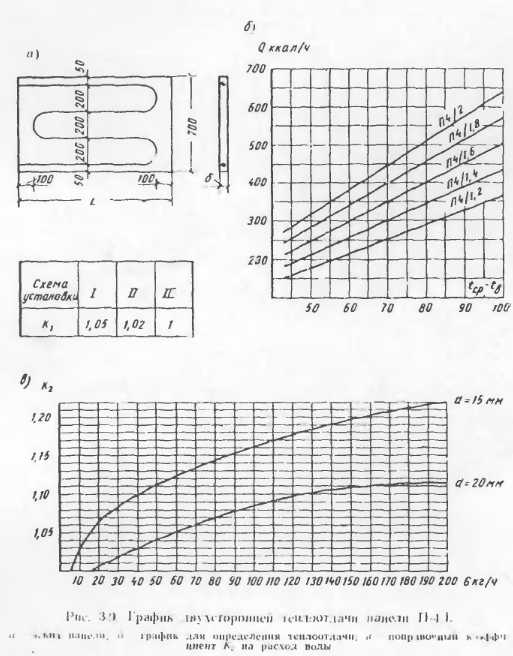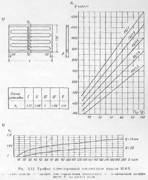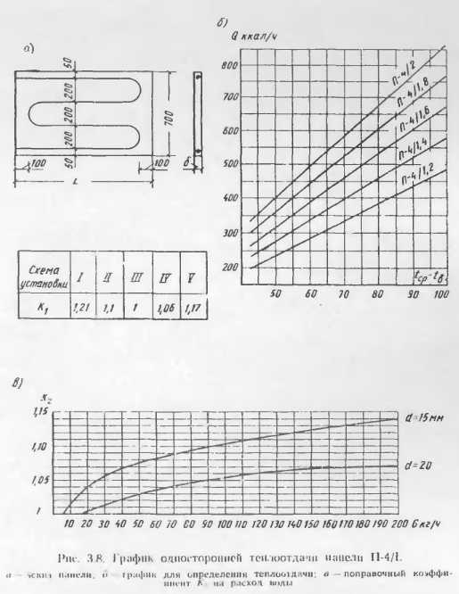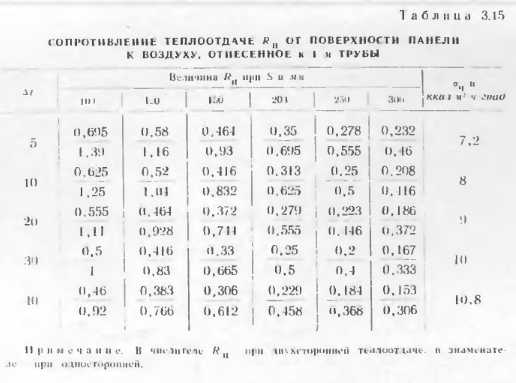 СОСТАВЛЕНИЕ ВСПОМОГАТЕЛЬНЫХ ТАБЛИЦ ДЛЯ ТЕПЛОВОГО И ГИДРАВЛИЧЕСКОГО РАСЧЕТОВТепловой расчет систем панельно-лучистого отопления и гидравлический расчет с переменными перепадами температуры теплоносителя для специалистов, впервые проектирующих эти системы, представляется несколько громоздким. Такое впечатление в значительной степени кажущееся, но оно в какой-то мере справедливо, если не систематизировать материалов, действительно необходимых для расчета тон или иной системы. Покажем на нескольких примерах, как можно упростить расчетные материалы различны систем и привести их к виду, удобному для применения в практике проектирования. А. Данные для расчета бетонных отопительных плинтусов с односторонней теплоотдачей В процессе конструирования систем плинтусного отопления детских учреждении выявилось, что из условий раскладки нагревательных приборов по помещениям необходимо иметь минимум два типоразмера: длиной 2,4 и 3,2 при расчете однотрубных систем отопления разности температур t будут существенно меняться, поэтому целесообразно было составить таблицу теплоотдачи этих приборов (табл. 3.2), что значительно облегчает тепловой расчет системы и исключает возможные ошибки при расчете теплоотдачи но формулам. ![]() ![]() ![]() ![]() ![]() ![]() ![]() ![]() Можно существенно ускорить гидравлический расчет, составив таблицу значений гидравлических характеристик замыкающих участков (см. табл. 3.6); гидравлических характеристик 5„ нагревательных элементов, заложенных в плинтусные приборы (см. табл. 3.7); приведенных гидравлических характеристик узла замыкающего участка и коэффициентов затекания при одностороннем присоединении приборов к стояку (см. табл. 3.8). Имеются аналогичные таблицы и для двухстороннего присоединения приборов к стояку (см. табл. 3.9). Применение вспомогательных таблиц дает возможность свести к минимуму трудозатраты па проектирование систем плинтусного отопления. Б. Данные для расчета бетонных отопительных плинтусов с конвективным каналом В результате расчета бетонной отопительной панели с конвективным каналом, приведенного в § 5 этой главы, получена исходная формула (3.2) для определения теплоотдачи. Несмотря на весьма простой вид этой формулы, все-таки в процессе лилового расчета системы удобнее пользоваться не формулой, а табл. 3.10, в которой даны готовые значения теплоотдачи прибора с конвективным каналом ![]() Для гидравлического расчета системы весьма полезны данные о гидравлических характеристиках замыкающего участка S, при различных диаметрах, приведенные характеристик замыкающего участка St н коэффициенты затекания и теплоносителя в приборы. ![]() В. Данные для расчета подоконных бетонных отопительных панелей ![]() ![]() ![]() ![]() ![]() ![]() ![]() ![]() ![]() ![]() Г. Данные для расчета перегородочных панелей ![]() ![]() ![]() ![]() ![]() Шаповалов И.С. ПРОЭКТИРОВАНИЕ ПАНЕЛЬНО-ЛУЧИСТОГО ОТОПЛЕНИЯ — М.: Стройиздат, 1966. |