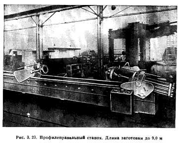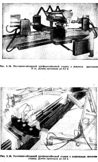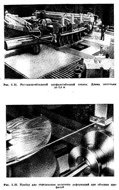 ФОРМООБРАЗОВАНИЕ ДЕТАЛЕЙ ИЗ ПРОФИЛЕЙДля производства деталей из профилей самолетостроительные фирмы располагают большим парком тяжелого уникального оборудования. В качестве формообразующего оборудования главным образом применяют растяжно-обтяжные станки фирм «Шеридан- Грей» и «Хаффорд» (рис. 3.18). Станки оснащены комплектом сменных зажимов, позволяющих осуществлять формообразование не только профильных, но и листовых заготовок. Профилегибочные станки, насчитывающие примерно 11 типоразмеров, различны по мощности и габаритам обрабатываемых деталей. Наибольшее усилие (растяжения при этом колеблется от 5 (модель 102 фирмы «Хаффорд») до 290 тс (модель Е-600-24 фирмы «Шеридан-Грей»); наибольшая длина заготовки от 1,8 (модель 102) до 8,5 м (модель 59, А-12 и А-14 фирмы «Хаффорд»), Применяется и профилегибочный станок с усилием растяжения 20 тс модели 121 (фирма «Хаффорд») для обработки деталей длиной до 55 м при большом угле изгиба благодаря наличию поворотного крыла, привод которого вокруг стола осуществляется червячной передачей. Помимо формообразования профилей, на станке обрабатывают листовые детали с максимальной шириной до 5,6 м. Станок снабжен дополнительным роликом, позволяющим проводить местную обкатку профилей и листов. Нашли применение два типа новых профилегибочных станков: модель 59 (А-14) фирмы «Хаффорд» и модели Е-20-12, Е-40-12 и Е-600-24 фирмы «Шеридан-Грей» (рис. 3.19—3.21). Станок модели А-14 с усилием растяжения 75 тс, предназначенный для обработки деталей из профилей и листов длиной до 8,5 м с наибольшим углом изгиба 180°, отличает встроенный нагрев и наличие специальной головки с обкатным роликом. ![]() ![]() ![]() ![]() Станки моделей Е-20-12, Е-40-12 и Е-600-24 —одного конструктивного исполнения, максимальные усилия растяжения станков равны соответственно 11, 19 и 290 тс, усилия стола 25, 45 и 560 тс, максимальная ширина обрабатываемых листов 5, 6 и 19 м, а длина — 37 и 48,5 м. Станок модели Е-600-24 является уникальным. Оригинальная конструкция крыльев с растяжными цилиндрами, подвижный силовой стол, механизм получения обратной кривизны и специальный механизм установки и крепления оправки на этих станках, а также комплект различных зажимных устройств позволяют быстро и легко проводить установку и съем гибочных оправок, осуществлять формообразование как листов, так и профилей, в том числе и с обратной кривизной, проводить калибровку детали после обтяжки. Все оборудование фирмы «Хаффорд», по желанию заказчиков, может быть оснащено специальными устройствами для местной доводки профилей в процессе обтяжки, а также специальными приборами (рис. 3.22), позволяющими определять величину деформации при обтяжке с помощью специальной деревянной оправки, контур которой соответствует контуру формоблока. Оборудование оснащается системами обратной связи. К оборудованию для обработки профилей относятся и профилеправильные станки, например два типа станков фирм «Хаффорд» и «Шеридан-Грей». Станки фирмы «Хаффорд» моделей 97, 98 и 189 (рис. 3.23) усилиями соответственно 120, 40 и 42 тс позволяют править растяжением профили длиной 6,6; 7,5 и 9 м, а также формооб- разовывать из них детали относительно малой кривизны, станок фирмы «Шеридан-Грей» усилием 90 тс предназначен для правки профилей длиной до 13,5 м за счет одновременного действия растяжения и кручения. Белянин П. Н. Производство широкофюзеляжных сам