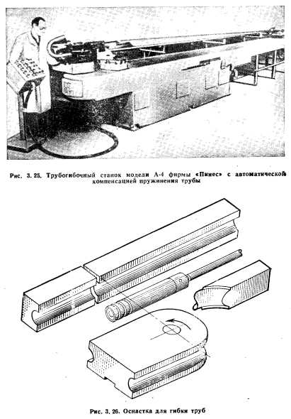 ФОРМООБРАЗОВАНИЕ ДЕТАЛЕЙ ИЗ ТРУБВ конструкции широкофюзеляжных самолетов применены трубопроводы из алюминиевых и титановых сплавов и стали диаметром от 6 до 150 мм, а в отдельных случаях свыше 200 мм. Основной технологической схемой формообразования труб является гибка-намотка с применением внутренних гибких вкладышей- оправок. Для гибки труб диаметром до 50 мм обычно используют станки с программным управлением, работающие в полуавтомати ческом режиме (рис. 3.24). Трубы диаметром от 100 до 250 мм изгибают на станках с ручным управлением. Имеются модели станков для гибки труб, с подогревом. Фирма «Пинес» выпускает трубогибочные станки с автоматической корректировкой угла гиба с учетом отпруживания при снятии нагрузки (рис. 3.25). При гибке труб для эффективного регулирования величины деформации в зонах растяжения или сжатия трубы применяют локальную смазку трубы и технологической оснастки, а также введение в определенных зонах поверхности трубы и оснастки абразивного материала. ![]() ![]() Производительность при изгибе труб в различных плоскостях на станках с программным управлением составляет около 5 гибов в минуту; смена программы на станке занимает не более 10— 15 мин. Программа составляется с помощью ЭВМ, в память которой заложены сведения по оптимальным режимам гибки и последовательности операций. Жесткость конструкции трубогибочных станков, высокая точность изготовления ответственных узлов этих станков, хорошее качество систем программного управления и оснастки обеспечивают высокую точность изгиба. ![]() Применяемая при гибке-намотке оснастка состоит из намоточ ного шаблона — оправки, разглаживающего башмака, зажим внутреннего вкладыша (рис. 3.26). Внутренний вкладыш обычно выполнен в виде многозвенной гибкой оправки. Применение раз глаживающего башмака и внутренней оправки позволяет устранит гофрообразование при изгибе. Конструкция внутренней гибкой мно гозвенной оправки, применяемой при изгибе труб на станках фирмы «Пинес», в последнее время неоднократно усовершенствовалась Соединение отдельных ее звеньев осуществляется по типу «шар — гнездо» (рис. 3.27), что позволяет: легко снимать и добавляет звенья; сохранять гибкость оправки при изгибе с малыми радиусами; обеспечивать высокую прочность и стойкость. Для изгиба труб диаметром от 30 до 65 мм при числе гибов не более двух, преимущественно в одной плоскости, применяют специализированные прессы с производительностью до 2000 гибов в час (рис. 3.28). Белянин П. Н. Производство широкофюзеляжных самолетов в США — М.: Машиностроение, 1979. |