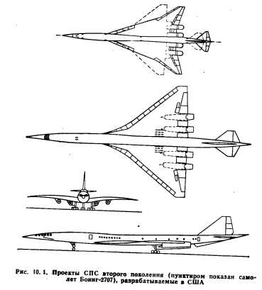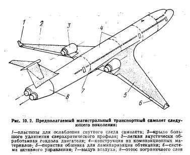 ПЕРСПЕКТИВЫ СОВЕРШЕНСТВОВАНИЯ ПАССАЖИРСКИХ САМОЛЕТОВ И ИХ ПРОИЗВОДСТВАСоздание широкофюзеляжных самолетов является закономерным результатом развития пассажирского самолетостроения. Анализируя тенденции развития мировой авиационной науки и практики, можно отметить, что в настоящее время наметилось несколько основных направлений совершенствования конструкций пассажирских и грузовых транспортных самолетов, обеспечивающих необходимое повышение эффективности производства и эксплуатации самолетов: создание сверхзвуковых пассажирских самолетов; создание дозвуковых пассажирских самолетов особо большой пассажировместимости (на 700—1000 пассажиров и более); создание дозвуковых пассажирских самолетов с учетом новейших достижений техники для авиалиний малой и средней протяженности (с обычной длиной разбега и пробега); создание дозвуковых пассажирских самолетов с коротким разбегом; создание грузовых самолетов с оптимальными характеристиками. Развитие мирового пассажирского самолетостроения идет в условиях все обостряющейся конкуренции, застоя (стагфляции) в экономике, инфляции, роста цен вообще и роста цен на топливо в особенности. К этому надо добавить постоянно возрастающие требования защиты и охраны окружающей среды и необходимость экономии сокращающихся природных ресурсов. Немаловажными являются требования повышения комфорта для пассажиров, а также снижения прямых эксплуатационных расходов и повышения рентабельности перевозок пассажиров и грузов. Создание конкурентоспособных самолетов в этих сложных условиях, когда конструкторы, технологи и экономисты должны согласовать и одновременно удовлетворить многим важным и противоречивым требованиям, становится все труднее и сложнее. Трудности разработки новых высокоэффективных конструкций самолетов будущего и организации рационального производства и эксплуатации намного превзойдут трудности, которые уже преодолены мировым самолетостроением. В будущем сохранится зависимость облика, конструкции и технических данных гражданских самолетов от спроса, конъюнктуры на рынке сбыта, а также от темпов и уровня научно-технического прогресса. В этих условиях все более важное значение приобретает принцип блочности всех конструкций, включая конструкции двигателей и агрегатов. В последнее время появились разработки самолетов с «резервной» тягой двигателей (в нормальных условиях такие двигатели развивают тягу, значительно меньше максимальной). Могут появиться самолеты с реактивно-вентиляторными двигателями, а также самолеты, на которых вместе с ТРДД будут применены турбовинтовые двигатели. Для самолетов США со взлетной массой 900 т и больше возможно использование ядерных силовых установок, хотя их разработка и доводка, как ожидают, продлятся до конца текущего столетия. Основным топливом для авиации на многие годы останется керосин, в отдаленном будущем возможно появление синтетических, углеводородных (керосиновых) топлив для авиадвигателей, а до этого будет использовано водородное топливо, обладающее хорошей теплотворной способностью и не загрязняющее внешнюю среду. Самолеты следующего поколения приемлемой стоимости с лучшими, чем в настоящее время, характеристиками и летно-техническими данными могут быть созданы только с использованием всех нов