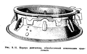 ПРОИЗВОДСТВО КОРПУСНЫХ И КОЛЬЦЕВЫХ ДЕТАЛЕЙАлюминиевые кольца для корпуса вентилятора обычно обрабатываются на вертикальном токарно-револьверном станке фирмы «Булард», имеющем рабочий стол большого диаметра. Для обработки колец применяются также вертикальные токарно-револьверные станки фирм «Морандо» и «Грей». Корпусные детали вентилятора, а также других узлов из титановых сплавов на фирме «Пратт—Уитни» сваривают специально разработанным методом. Ручную сварку плавлением выполняют в пластмассовом кожухе, заполненном инертным газом, который обеспечивает надежную защиту шва от загрязнений. Этот способ прост и универсален. Операции обточки, сверления и расточки отверстий корпусных деталей фирмы «Дженерал электрик» и «Роллс-Ройс» выполняют на станках типа «машинный центр» с ЧПУ фирмы «Керней-Треккер» модели «Мильвоки Матик» с магазином на 80 инструментов. Кроме того, английская фирма применяет обрабатывающий центр фирмы «Ставели» с магазином на 40 инструментов. Корпуса сварной конструкции двигателя JT9-D обрабатывают на карусельно-шлифовальном станке фирмы «Элб-Шлифф» модели SWR-150D (рис. 9.10). На фирме «Роллс-Ройс» широко применяют обработку корпусных деталей из жаропрочных сплавов электрохимическим методом, для чего используют 18 установок «Ано- кат». Корпуса из легких сплавов обрабатываются на пятикоординатном станке «Омнимил» с программным управлением фирмы «Сандстренд». Разрабатывается проект автоматической линии из станков с ЧПУ для обработки крупногабаритных корпусных деталей. Корпуса камер сгорания двигателя JT9-D изготавливают из высокотемпературного сплава «Инконель-718», в то время как для корпусов турбины и выхлопного сопла применяют поковки из сплава «Инколой-901». ![]() Для обработки кольцевой детали вого сплава, представляющей собой тонкостенную поковку диаметром 244 мм, английская фирма «НРС Инджинииринг» изготовила приспособление для сверления 416 отверстий. Эта же фирма изготовила контрольное приспособление для проверки взаимного положения конструктивных и технологических отверстий. Положение каждого отверстия относительно базы в центре приспособления измеряется индикатором, закрепленным на телескопической консоли, внутренний конец которой соединен сферической цапфой с кронштейном крепления в центре приспособления. Крупногабаритные приспособления изготавливают на универсальных станках; растачивание отверстий ведется на комплексе оборудования, состоящем из горизонтально-расточного станка «Унион» и двух вертикально-фрезерных станков. ![]() ![]() Для обработки тонкостенных сложных корпусов с фасонными пазами фирма «Роллс-Ройс» применяет электрохимическую н электрофизическую обработку. На рис. 9,11 показан корпус двигателя, подвергаемый электрохимической обработке. Ребра жесткости корпуса обрабатываются малогабаритным инструментом (для обработки корпуса двигателя потребовалось 27 инструментов). Масса заготовки равна 453 кг, а масса детали — 67 кг. При изготовлении корпуса, показанного на рис. 9.12, применяется химическая обработка одновременно по всей поверхности детали. Белянин П. Н. Производство широкофюзеляжных самолетов в США — М.: Машиностроение, 1979. |