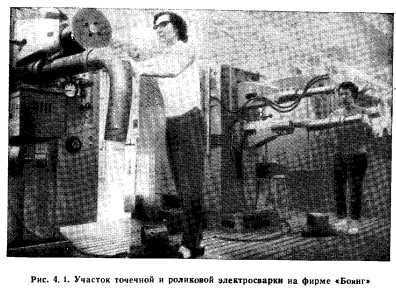 СВАРКА И ПАЙКАТехнический уровень сварочного производства пр.и изготовлении широкофюзеляжных самолетов характеризуется высокой степенью специализации и организации производства, использованием высококачественного оборудования, широким применением средств малой механизации. Это обеспечивает стабильность технологии и быстрые темпы освоения новых изделий. Для соединения деталей из нержавеющих сталей, титановых, алюминиевых и других сплавов используется большое количество разнообразного сварочного оборудования, однако находит применение и ручная сварка. Технологические процессы существенной новизной не отличаются. В сварочном цехе фирмы «Боинг» в г. Оберне изготавливают трубопроводы и короба для топливной, водяной, масляной и воздушной систем. На рис. 4.1 показан участок точечной и роликовой электросварки этого цеха. Для изготовления трубопроводных самолетных систем промышленность США широко использует в качестве полуфабрикатов как бесшовные трубы, поставляемые металлургическими компаниями, так и сварные прямошовные тр-убы диаметром 40—200 мм с толщиной стенки от 0,4 до 1,5 мм, изготавливаемые из стальных, титановых и алюминиевых сплавов. Центр ал ивов айн аЯ поставка прямошовных сварных груб осуществляется фирмой «Иодер», располагающей высокопроизводительными трубосварочными станами, оснащенными электронно-лучевыми головками фирмы «Гасильтон стандарт». ![]() ![]() В сварочных цехах авиастроительных фирм производится гибка1 сваренных титановых труб диаметром до 230 мм на специальных станках фирмы «Пинес», которые придают трубам заданную внешнюю и внутреннюю форму с помощью штампа и оправки (рис. 4.2). На фирме «Макдоинелл—Дуглас» перед сваркой заготовки труб из титановых сплавов диаметром 150 мм гнут с подогревом (индуктор смонтирован в оправке) на станке с ручным управлением фирмы «Пинес». Для гибки трубопроводов диаметром от 6 до 50 мм без наполнителя, в основном из алюминиевых сплавов, эта же фирма использует станок с ЧПУ фирмы «Датекс». Производительность станка — пять швов трубы в различных плоскостях в минуту В сварочном цехе фирмы «Боинг» в г. Оберне имеется линия химической очистки тру/б перед аваркой отдельных участков трубопроводов. Дуговая и точечная сварка титановых узлов трубопроводов осуществляется в .камерах с инертной атмосферой (рис. 4.3). Из сварочного цеха узлы трубопроводов направляют для монтажа систем, например системы кондиционирования воздуха самолета, на сборочные заводы этой фирмы в городах Рентон, Эверетт и др. Сборку гидросистем самолета DC-10 осуществляют с помощью индукционной пайки стальных трубопроводов диаметром до 36 мм в среде защитных газов (аргон) на специальной установке с ЧПУ для пайки ТВЧ фирмы «Тейлор Винфилд». Установка обеспечивает защиту как наружной, так и внутренней стороны паяного шва. После пайки Bice соединения проходят люминесцентный контроль. ![]() Белянин П. Н. Производство широкофюзеляжных самолетов в США — М.: Машиностроение, 1979. |
