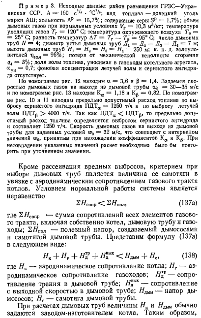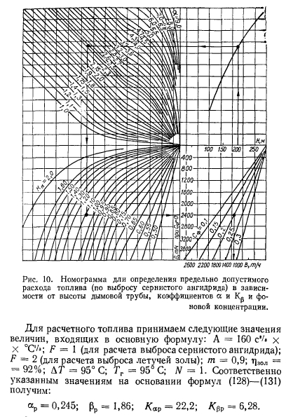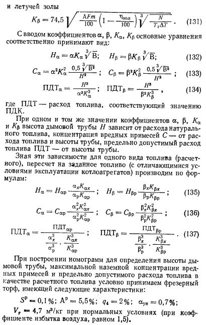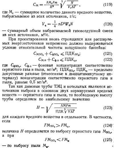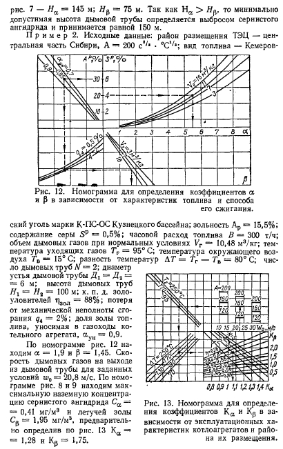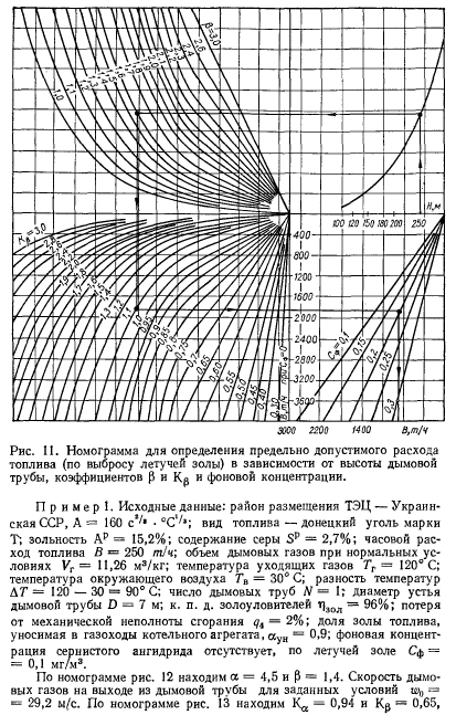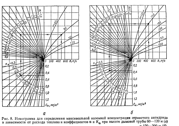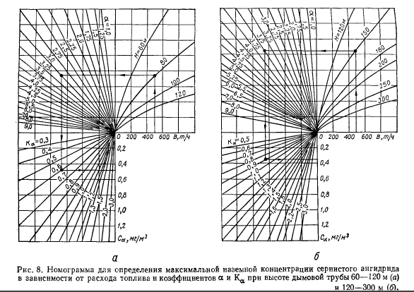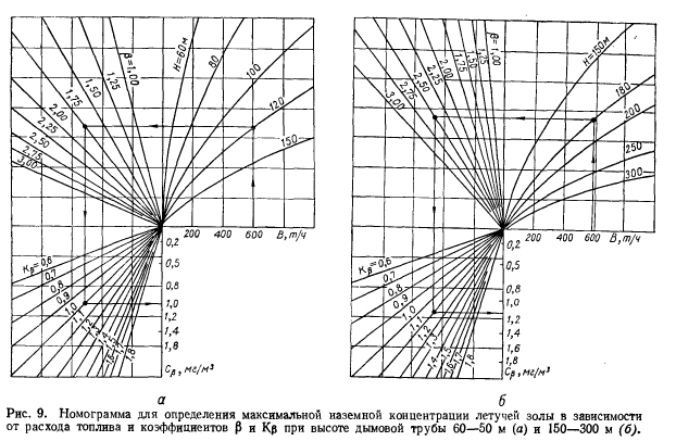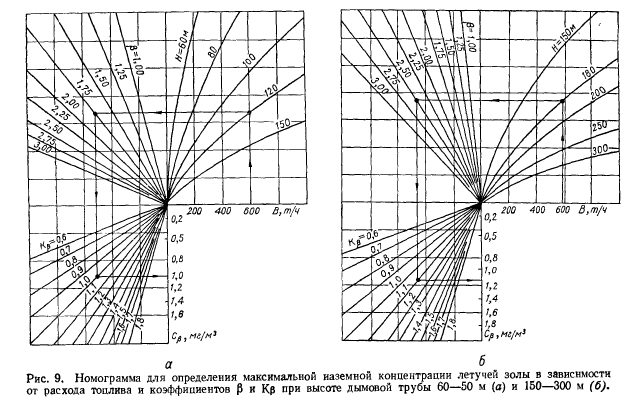Очистка воздушного бассейна и выбор дымовых труб источников теплаПри правильном выборе дымовых труб обеспечиваются приемлемые по санитарным нормам концентрации вредных выбросов. Значение максимальной приземной концентрации вредного вещества, мг/м3, от одиночного источника выброса при неблагоприятных метеорологических условиях определяют по формуле ![]() Если выброс вредных веществ равномерно распределен по N источникам, которые расположены близко друг от друга и имеют одинаковые высоты и диаметр устья, то суммарное значение максимальной концентрации определяем по формуле ![]() ![]() Значительно упрощается расчет потребной высоты дымовой трубы с помощью графического метода [35]. Факторы, от которых зависит величина максимальной приземной концентрации вредного вещества, могут быть разделены на две группы. Первая группа объединяет характеристики топлива и способы его сжигания, влияющие на величину выброса вредных примесей. К ней можно отнести: содержание в топливе серы Sp и золы Ар, удельный объем дымовых газов на выходе из трубы при нормальных условиях Уг, потерю тепла от механической неполноты сгорания q4 и долю золы топлива, уносимую газами в газоходы котельного агрегата аун. Влияние показателей этой группы на загазованность воздушного бассейна учитывается коэффициентами по выбросу сернистого ангидрида ![]() ![]() ![]() ![]() ![]() ![]() ![]() ![]() ![]() ![]() ![]() ![]() ![]() ![]() ![]() ![]() ![]() ![]() ![]() Виноградов Ю. И., Векштейн Л. М., Соболь И. Д. ПРОМЫШЛЕННОЕ ТЕПЛОСНАБЖЕНИЕ. «Техника», 1975 |