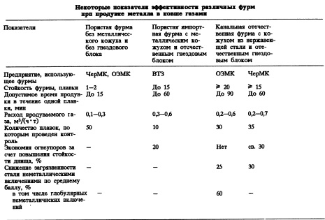 Опыт эксплуатации показал, как существенно улучшаются техникоэкономические показатели выплавки стали. Однако по стойкости канальных фурм за период работы подины но достигнуты результаты, известные из литературных источников. По мнению авторов, основным фактором, снижающим продолжительность эффективной продувки через подину в отечественных условиях является различие технологии выплавки и заправки дуговой печи. В настоящее время за рубежом печи работают по одношлаковой технологии мс болотом", проводя заправку печи после кампании в 5—10 плавок. В отличие от них, дуговые печи ЧерМК работают по двушлаковой технологии с заправкой после выпуска каждой плавки. В результате отмечены случаи перекрытия выходных отверстий над продувочными блоками. В подтверждение к вышеуказанному на дуговой печи ДСП150 ОЭМК, где условия работы подины другие — с большим периодом нахождения подины под жидким металлом, стойкость фурм существенно возросла Опытные плавки на ОЭМК проводили с использованием в шихте 50—70% металлизованных окатышей. Сталь выплавляли одношлаковым процессом, расход инертного газа через фурмы составлял до 15мУч на одну фурму. К основным положительным* результатам, полученным в опытной кампании, можно отнести снижение расхода электроэнергии до 50 кВтч/т стали; уменьшение перепада температуры металла в печи и ковше при выпуске плавки за счет более равномерного распределения нагрева ванны при ее перемешивании инертным газом в дуговой печи на 30—40 °С; повышение извлечения марганца из шихты на ОД % (абс.); увеличение скорости проплав ления металлизованных окатышей — на 5—8%. Опыт проведения всех опытных кампаний на ЧерМК и ОЭМК с использованием канальных продувочных блоков, устанавливаемых в подине печей, показал, что для повышения длительности эксплуатации канальных фурм необходимо переходить к освоению конструкции сменных блоков и изменению технологии выплавки стали, предусматривающей использование установки ковшпечь. Наряду с работами, проведенными по вдуванию газов через подину, на Череповецком и Оскольском металлургических комбинатах созданы специальные водоохлаждаемые наклонные (стеновые) кислородные фурмы для подачи кислорода на поверхность жидкого расплава со скоростями выхода струи из сопла значительно выше скорости звука с целью лучшего использования кинетической энергии струи и внедрения ее в глубь жидкого расплава для более высокого усвоения кислорода и уменьшения количества выделяемых газов. Конструкция фурмы позволяет регулировать угол подачи струи кислорода на поверхность расплава. Расход воды на охлаждение составляет 40 мУч, максимальный угол подачи кислорода 65°. Освоение новой фурмы проводили при выплавке коррозионностойких и подшипниковых сталей в разных режимах продувки. Наиболее? эффективный режим продувки при расходе газообразного кислорода составлял "ЗОООм3/1*. При продувке кислородом с меньшим расходом эффективность работы фурмы снижалась и приближалась к эффективности работы обычной сводовой вертикальной водоохлаждаемой фурмы. Ниже приведены показатели работы наклонной сверхзвуковой водоохлаждаемой и обычной вертикальной фурмы (числитель — наклонная, знаменатель — обычная):
