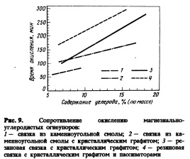 В соответствии с приведенной диаграммой огнеупоры на каменноугольной связке имеют наименьшее значение горячей прочности на изгиб. Последующая пропитка почти удваивает значение горячей прочности на изгиб. Значения для огнеупоров на полимерной связке лежат между этими кривыми. Так как структура огнеупоров на полимерной связке упрочняется добавлением веществ, препятствующих окислению, стабильность структуры может быть повышена в соответствии с количеством' добавок. Повышенная стабильность при высоких температурах является результатом образования шпинели, уплотняющей структуру. Для сравнения также приведены значения горячей прочности на изгиб огнеупоров на керамической связке, пропитанных каменноугольной смолой. * Хотя значения их горячей прочности на изгиб при температуре 1250 °С очень высоки, при дальнейшем росте температуры до 1500 °С они значительно уменьшаются и их общий уровень находится рядом с огнеупорами на связке из каменноугольной смолы. Изза отсутствия стандартного метода испытаний углеродистых огнеупоров Refratechnik проводила испытания на горячую прочность на изгиб по DIN 51048 (часть 1). В отличие от этого стандарта образец коксовался и подвергался нагружению после разогрева и выдержки, с общей продолжительностью этих операций 10 мин. Сравнительные измерения показ* ли, что относительно короткий нагрев и выдержка достаточны для выравнивания температуры в образце и окисление образца в атмосфере нагревательной печи проходит только в слое толщиной +/—1 мм на поверхности. Примерный уровень значений горячей прочности на изгиб соответствует данным, приведенным в технической литературе. Сравнение по абсолютным значениям, приведенным в технической литературе, невозможно изза значительных отличий в методике проведения испытаний (особенно в части испытания при комнатной атмосфере и выдержках в течение определенного времени). Так как производители огнеупоров на связке из каменноугольной смолы предпочитают приводить сведения о своих огнеупорах по значениям холодной прочности после коксования, они не заинтересованы в разработке стандартного метода испытания для определения горячей прочности на изгиб. Таким образом, задачей производителей огнеупоров на полимерной связке является разработка в кратчайшие сроки стандартного метода испытаний. Это позволит включить в перечень данных на огнеупоры горячую прочность на изгиб, что дает больше информации о поведении огнеупоров, чем холодная прочность. Углерод Основным свойством углеродистой добавки с точки зрения срока футеровки является устойчивость к окислению. Кроме того, углеродистая добавка должна иметь возможность защиты образующегося при пиролизе каменноугольной смолы или полимеров каркаса из аморфного углерода, имеющего меньшее сопротивление окислению. Сопротивляемость окислению повышается с увеличением упорядоченности кристаллической структуры. Этот факт объясняет применение чешуйчатого графита. Изза того, что эвтектическая температура золы в кристаллах чешуйчатого графита составляет (в зависимости от источника его происхождения) 11001600 °С, не каждый сорт графита может быть применен для изготовления изделий. Хотя современными методами очистки можно достичь уменьшение содержания золы в графите до 1 %, при этом происходит раскрытие слоев графита 