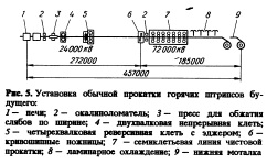 Установка в Хикмане оборудована шестью клетями и е§ производительность составляет 1 млн.т в год. Большую часть передела составляют углеродистые стали с содержанием углерода до 0,3 %, прокатываемые на конечную толщину 1,95—12,7 мм, однако возможна и прокатка высокопрочных сталей. Серия испытаний, проведенных на установке в Кроуфордсвилле, включала производство горячих штрипсов из легированных сталей, сталей с высоким содержанием меди и серы, кремнистых сталей и углеродистых сталей, прошедших термомеханическую обработку, как с легирующими микродобавками, так и без них. При наличии достаточного количества прокатных клетей производство горячих штрипсов из указанных марок стали не представляет затруднений. Получив отличные результаты, Ньюкор Стил приняла решение задействовать второй ручей как в Хикмане, так и в Кроуфордсвилле.