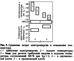 Небольшая степень у&шрения и высокая эффективность деформировал»! в трехвалковых клетях позволяют снизить установленную мощность привода и прокатывать металл при меньшей температуре изза уменьшения работы деформации, требуемой для получения нужного удлинения [6]. В обобщенном виде эти соотношения приведены на рис. 3, иллюстрирующем относительное увеличение энергии деформации и повышение температуры прокатки в двухвалковых клетях в сравнении с деформацией в трехвалковых клетях