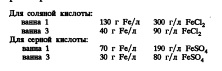 Одно из преимуществ турбулентного травления заключается в том, что кислота в каждой cejciura хорошо удаляется в независимости от скорости движения полосы. Оптимальный набор концентраций кислоты может быть получен уже в трёх травильных секциях. Среднее значение концентрации травильного раствора показано ниже: Для соляной кислоты: ванна 1 ванна 3 Д ля серной кислоты: яаиия 1 ванна 3