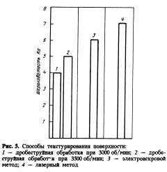 Текст у рирование (см. рис. 5). Для этой цели используют различные способы: дробеструйную обработку, электроразрядный метод и лазерное текстурирование. Каждый из этих способов имеет свои ограничения в применении и в получаемых результатах.