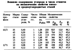 Расчет ведется от готового профиля с учетом термической обработки. Результатом второго этапа является набор возможных технологических схем производства ФПВТ. Далее по каждой технологической схеме рассчитывается уровень свойств готовых профилей. Экспериментально исследовали влияние отдельных технологических операций формоизменения и их сочетаний на механические свойства и качество поверхности. Показано, что при сопоставимых • степенях деформации и состояния исходного подката волочением в монолитной волоке достигается большее упрочнение металла, чем при холодной прокатке. Следовательно, при одном и том же исходном подкате, применяя различные способы формоизменения или их сочетания, можно значительно изменять свойства готового профиля. Исследования качества поверхности профилей показали, что при одинаковом исходном состоянии поверхности подката и вытяжке при холодной деформации значения Ra выше в роликовой волоке по сравнению с другими способами. Экспериментальные исследования влияния промежуточных отжигов в ходе производства ФПВТ на показатели качества готовых профилей показали, что увеличение числа промежуточных отжигов с 1 до 5 приводит к снижению прочностных пластических свойств (таблица), обезуглероживание возрастает в 3— 4 раза. Практическое использование