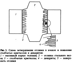 УЛУЧШЕНИЕ КАЧЕСТВА СТАЛЬНЫХ ЛИТЫХ ДИФФЕРЕНЦИАЛЬНО ЗАКАЛЕННЫХ ОПОРНЫХ ВАЛКОВ ДЛЯ СТАНОВ ГОРЯЧЕЙ И ХОЛОДНОЙ ПРОКАТКИВсе возрастающие требования к прокатным станам, выпускающим стальные листы и штрипсы, по допускам на толщину и профиль обусловливают необходимость постоянства характеристик опорных валков и способность сохранять профиль в течение всей кампании прокатки,. Структурные свойства опорного валка на поверхности и под поверхностью улучшены модифицированием в течение выплавки стали и повышенными тепловыми градиентами во время разливки и затвердевания. С помощью данных методов обработки была получена оптимальная структура металла, дающая высокую износостойкость валка и сохранение его формы Опасность усталостного выкрашивания валка значительно уменьшена или устранена полностью.Основные требования к свойствам опорного валка: жесткость, сопротивление износу, сопротивление к трещинообразованию и выкрашиванию, сохранение свойств в течение срока службы. Изготовитель почти не имеет возможности изменять конструкцию опорного валка и может влиять только на жесткость валка заменой материала или технологией изготовления. То же можно сказать и о сопротивлении износу, качестве металла по толщине валка и сопротивлении выкрашиванию. Тщательный подбор материала, технология изготовления и преимущества влияния на свойства при отливке дают возможность улучшить качество опорного валка для станов как горячей, так и холодной прокатки. Упругие свойства валка Литой моноблочный (однослойный) опорный валок имеет высокий и постоянный модуль упругости. Он более жесткий, чем биметаллический валок такой же конструкции, у которого более низкий модуль изгиба изза более низкого модуля осевой зоны валка. Упругий прогиб валка оказывает решающее воздействие на мениск (утолщение) в середине полосы (по отношению к толщине) и предполагаемый профиль полосы [1]. Установлено, что профиль полосы зависит от формы мениска на рабочем валке, от планшетности опорного валка и полосы, а также от изношенности валка; кроме того, изза сложности расчета такого коэффициента, как переменный модуль изгиба в опорных биметаллических валках, затруднен расчет изгиба опорных и рабочих валков. Подсчитано, что моноблочный стальной валок имеет на 10% меньший изгиб в средней части бочки по сравнению с биметаллическим валком при одинаковых условиях прокатки. Кроме того, переменный модуль упругости биметаллических валков приводит к характерному Wобразному профилю поверхности износа по сравнению с плоским профилем поверхности износа литых моноблочных опорных валков. Сопротивление износу литой стали На заводах фирмы РБ Теннент технология изготовления опорных валков постепенно изменилась от литья в песчаные формы до литья в кокиль с массивным корпусом, соответствующим форме валка. Применение холодильников привело к ускоренному затвердеванию металла в области бочки, уплотнению металла, к большей однородности рабочей поверхности и отсутствию ликвации. Чем больше скорость охлаждения, тем меньше расстояние между дендритами и тем плотнее структура (рис. 1). Первичная дендритная структура сохраняется в течение всех циклов последовательной термической обработки, в то время как структура субзерен превращается в карбидную и бейнитную. Поверхность бочки и под