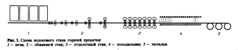 УПРАВЛЕНИЕ ОХЛАЖДЕНИЕМ НА ОТВОДЯЩЕМ РОЛЬГАНГЕ ПОЛОСОВОГО СТАНА ГОРЯЧЕЙ ПРОКАТКИ: СОВРЕМЕННЫЕ ВОЗМОЖНОСТИ И ПЕРСПЕКТИВНОЕ РАЗВИТИЕНа стане горячей прокатки полос сталь охлаждается водой непосредственно после чистовой клети и перед смоткой. Контроль температуры и режима охлаждения является важным вследствие физических (фазовых) превращений в стали. Для такого контроля в технологических компьютерах управления применяют линеаризованные модели, основанные на теоретических моделях, адаптированных к практике. Для некоторых из этих моделей оценка необходимых параметров производится вне промышленного эксперимента использованием достаточно большого объема полученных данных, другие параметры могут оцениваться на месте при доработке (адаптации) модели. В данной статье представлены модели, используемые для управления охлаждением на отводящем рольганге, которые применяют на заводах Хуговенс групп в Нидерландах, SSAB в Швеции и на Inland Steel в США. Далее будет описана разработка "встроенной1 модели охлаждения на отводящем рольганге, выполненная в исследовательском подразделении фирмы Хуговенс.Чтобы иметь возможность улучшения однородности и воспроизводимости механических свойств, производителям стальной полосы необходимы средства улучшения управления этими процессами. Важным параметром горячей прокатки является температура, которую следует тщательно контролировать. Различия в температуре могут проявляться как от сляба к слябу, так и непосредственно в одном слябе по множеству причин. Наличие несколько печей в линии стана (рис. 1), имеющую различные характеристики нагрева, приводят к температурным различиям между слябами. Толкательные печи оставляют следы от направляющих, которые приводят к различию температур в одном слябе. На температурные колебания влияют следующие параметры: варьирование технологией прокатки, применение воды для сбива окалины, время между проходами, межклетьевое охлаждение, время пребывания сляба на промежуточном траспортере и скорость прокатки. Вариации температуры полосы являются причиной различий в сопротивлении деформации, приводящих, в свою очередь, к различиям в ширине, толщине и форме полосы. На охлаждающую секцию отводящего рольганга поступают полосы, характеризующиеся варьированием всех этих параметров. Вариация толщины влияет на характер охлаждения на отводящем рольганге, а вариации формы в особенности— на поведение воды на поверхности полосы. Плохой контроль охлаждения на отводящем рольганге может еще усилить эти температурные различия и привести к неприемлемым колебаниям конечной структуры и, следовательно, механических свойств стали. Охлаждение горячей полосы на отводящем рольганге