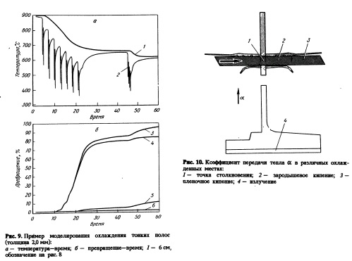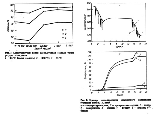 Управление таково: для каждой полосы можно обеспечить необходимую скорость охлаждения, включая или выключая струи. Исходя из действительной скорости охлаждения, рассчитывают время и теплоту превращения.