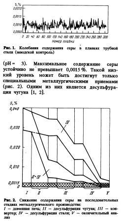 НИЗКОЛЕГИРОВАННЫЕ СТАЛИ ДЛЯ ГАЗОПРОВОДНЫХ ТРУБ, УСТОЙЧИВЫЕ В КИСЛОЙ СРЕДЕОписаны возможные типы коррозионного разрушения низколегированных сталей под воздействием кислых газовых сред. Трубные стали для транспортировки кислых газов должны обладать высоким сопротивлением HIC и HSCC. Описаны меры на различных этапах технологии производства, обеспечивающие получение необходимых свойств. Обобщены данные промышленного производства при выполнении большого количества заказовВведение Основные тенденции развития нефте и газовой индустрии предполагают в ближайшем будущем предъявление более жестких требований к трубопроводам. Постоянное повышение эксплуатационных давлений диктует повышение прочности и вязкости сталей. Так как газовые среды становятся более агрессивными, необходимы трубопроводы специально для транспортирования влажного кислого газа. Эти требования привели к разработке труб большого диаметра, стойких против инициируемого водородом растрескивания (ШС). Углеродистые и низколегированные стали подвержены следующим типам коррозионных повреждений во влажном кислом газе: общая коррозия; поверхностное вспучивание (блис теринг) и внутреннее растрескивание; коррозионное растрескивание под напряжением. В отличие от коррозионного растрескивания поверхностное вспучивание и внутреннее растрескивание, известное как инициируемое растрескивание водородом (ШС) или ступенчатое растрескивание (SWS), развиваются, когда внешняя нагрузка отсутствует, если содержание водорода в стали достаточно высоко. Водородное коррозионное растрескивание под напряжением (HSCC), неверно классифицируемое сульфидное растрескивание под напряжением (SSC), имеет место только при внешних растягивающих напряжениях. Коррозионное растрескивание низкоуглеродистых и низколегированных сталей вызывает активность водорода в стали; температуру; химический состав стали; прочность и микроструктуру стали; уровень и тип механической нагрузки; длительность выдержки. Для работы в кислом газе рекомендуются стали для трубопроводов, имеющие соответствующее сопротивление ШС и HSCC. В настоящей работе обсуждены этапы металлургического передела от стали до готовой трубы. Представлен процесс производства, обеспечивающий максимально точное соответствие спецификациям на стали для работы в кислой среде. Разработка марок сталей для работы в атмосфере кислого газа Такие стали требуют специальных усилий по разработке их химического состава. Содержания углерода и (или) марганца должны быть пониженными по сравнению с обычными сталями. Ограничение содержания серы i,? уменьшение осевой ликвации играет решающую роль в повышении устойчивости стали в кислой газовой среде. На рис. 1 локазан промышленный уровень содержания серы в сериях из 305 плавок сталей, стойких против ШС в растворе NACE