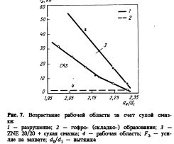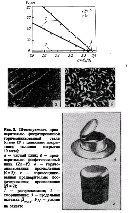 Как можно видеть, все системы ОСС улучшают штамповку стали с металлическим покрытием преимущественно за счет снижения коэффициента трения. Структура На рис. 6 схематически показана структура Durasteel. Durasteel содержит 20—30г/м2 цинкникелевого покрытия с хроматным слоем примерно 50 мг/м2 и примерно lr/м2 крем нийорганической пленки. Мы производим сталь Durasteel, основываясь на нашем опыте с применением высококачественных цинкникеле вых покрытий Glavigal—ZnNi для европейской автомобильной промышленности и технологии Durasteel компании Кобэ Стил Лтд” (Япония). Подробное описание процесса и продукции было представлено ранее [9]Рис. 6. Схема слоев в покрытии Durasteel: Покрытие Deuasteel можно применять также в случае других металлических покрытий, таких как электролитический цинк. Мы получили результаты коррозии некрашеных чашек (вытяжка на машине Эриксена, чистый диаметр 66 мм, диаметр пуансона 33 мм) после двухнедельной экспозиции на лабораторной циклической установке. Из результатов этих выборочных испытаний следует заметное улучшение сопротивления коррозии по сравнению с образцами, покрытыми только металлическим покрытием. Причиной является эффект пассивации хроматного слоя, в то время как органическая пленка защищает хроматный слой от растворения в процессе предварительной обработки. Более того, пленка дает дополнительный барьерный эффект, вследствие чего элементы, имеющие тенденцию к реакции в поперечном направлении, вынуждены вступать в реакцию со слоем DEкраски. Такое же улучшение барьера коррозионной стойкости мы наблюдали на образцах другой формы [6]. Durasteel применяется двумя японскими автомобилестроительными компаниями для повседневного производства автомобилей и в настоящее время испытано рядом еь ропейских производителей автомобилей (покрытие на базе в основном Электроцинка, которое мы называем Gravigal DSZn). Важно отметить, что для хорошей свариваемости и окрашиваемости EDсоставами органическая пленка должна быть однородной и не превышать некоторую критическую толщину. Временные смазывающие грунтовки На рынке автомобильных материалов возникло требование к улучшению иггампуемости стального листа как с покрытием, так и без него за счет использования лучших смазок. Это можно сделать путем использования улучшенных антикоррозийных масел (предсма зок) или более эффективно— путем использования тонких органических пленок. В обоих случаях коэффициент трения будет снижаться, что приведет к улучшению иггампуемости. Улучшение штампуемости за счет применения сухой смазки показано на рис. 7. Можно видеть, что рабочая область существенно увеличивается (условия испытания: чашки Эриксена, пуансон 33 мм, скорость пуансона 10 мм/с, одинаковые марка стали и толщина, смазка BP Olex LX 4445 по 5г/м2 с каждой стороны, сухая смазка без масла). В будущем при использовании высокопрочных сталей высыхающие смазки содержат хороший потенциал улучшения формообразующей способности.