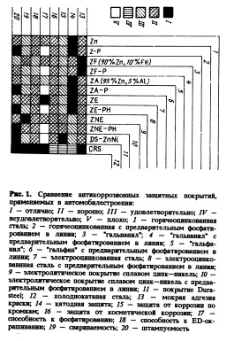 СТАЛИ С ПОКРЫТИЕМ ДЛЯ АВТОМОБИЛЕСТРОЕНИЯ. СОСТОЯНИЕ ВОПРОСА И НАПРАВЛЕНИЯ РАЗВИТИЯДля удовлетворения потребительского спроса в части коррозионной стойкости и срока службы корпуса аетомобиля в автомобилестроении используется стальной лист с металлическим покрытием на основе цинка. В Европе применение стального листа с покрытием растет и достигнет к середине 90х годов в среднем 60—80 % при изготовлении корпусных деталей. В настоящее время используется несколько вариантов покрытия на основе цинка, и продолжается поиск других вариантов покрытия. В настоящей работе дан сравнительный анализ свойств этих покрытий. Особое внимание уделено сталям с предварительно фосфатырованным покрытием, с различными видами цинковых покрытий и с покрытием на основе различных органических композитов (металлическое плюс органическое покрытие), которые являются перспективными для применения в автомобилестроении.1. Почему в автомобилестроении используется сталь с покрытием? Единственным фактором, обусловливающим применение стали с покрытием в автомобилестроении, является увеличение коррозионной стойкости. Интенсивное использование анти обледенителъной соли в последние двадцать лет и, соответственно, усиление коррозии корпусных деталей автомобиля обусловили пристальное внимание к мерам предотвращения коррозии. Улучшение средств оптического контроля за долговечностью автомобильного корпуса при техническом обслуживании автомобилей вызвало повышение требований к внешнему виду автомобилей с целью полного удовлетворения покупательского спроса. Следует различать три типа коррозии: 1. Косметическую коррозию (коррозия внешних поверхностей снаружи во внутрь), происходящую при повреждении слоя окраски, например, в результате "забрасывания" камешков. Быстрая коррозия железа ухудшает внешний вид, если не применять покрытие на основе цинка, предотвращающее коррозию стали. 2. Перфорационную коррозию ("коррозия изнутри наружу"), которая начинается от внутренних поверхностей (кромки отверстий, фланцы и др.), где обычные меры предотвращения коррозии, такие как катафорезное покрытие, совершенно невозможны, или там, где особенно жесткие условия коррозии или локальные повреждения стального листа, которые также неблагоприятно влияют на внешний вид наружных панелей. 3. Конструкционную коррозию, когда развитая (перфорационная) коррозия приводит к функциональному ослаблению корпуса автомобиля. Для защиты важных деталей автомобиля применяются высокоэффективные меры антикоррозионной катодной защиты. Повышенное внимание к этим вопросам в последние десять лет привело к созданию ряда кодов коррозионной стойкости. В 1981 г. Скандинавский Северный Код определил коррозионную стойкость как 3/6/6 лет для косметической, перфорационной и конструкционной коррозии . соответственно. Североамериканские рекомендации 1990 г. указывают 5/10/10 лет и. Автомобилестроители предсказывают на будущее более высокие показатели, такие как 6 лет против косметической коррозии, 10 лет против перфорационной коррозии и 15 лет против коррозии особо ответственных деталей. Из этой тенденции покупатели могут получить подтверждение достаточно высокого уровня гарантий. Что касается коррозионной защиты кузова, то очень важно отметить, что общий результат зависит не только от испо