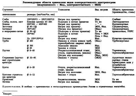 Ограниченный, но многолетний опыт применения этих видов электронагрева в отечественной металлургии, информация об интенсивном их применении за рубежом выявляют очевидные выгоды их использования для нагрева под деформирование (прокатку, ковку, волочение) и термическую обработку. За счет уменьшения теплопотерь энергозатраты снижаются на ~30%, потери металла в 8—10 раз, капитальные затраты в 6—8 раз, металлоемкость нагревательного и термического оборудования, занимаемые производственные площади на 30—60%; можно исключить или свести к минимуму вредные выбросы, а следовательно, и затраты на защиту окружающей среды; улучшить условия труда