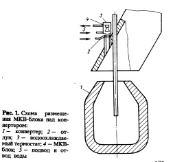 ПРИМЕНЕНИЕ МКВТЕХНИКИ ДЛЯ КОНТРОЛЯ ТЕХНОЛОГИЧЕСКИХ ПРОЦЕССОВ ПРИ ПРОИЗВОДСТВЕ СТАЛИМикроволновая техника позволяет создать новое поколение измерительных средств для контроля технологических процессов. Применительно к сталеплавильному производству разработаны системы бесконтактного измерения уровня расплавов в конвертере, в том числе при продувке, промковше, при ковшевом вакуумировании, в передвижных миксеро возах, сыпучих материалов в бункерах и шахтных печах. Точность измерения 1+5 см. Опытные образцы некоторых систем опробованы на промышленных объектах.В сталеплавильном производстве подавляющее количество операций как подготовительных, так и технологических связано с необходимостью измерения уровня материалов и жидких расплавов в различного рода агрегатах и емкостях. Однако большинство датчиков, применяемых для этой цели, дают лишь качественную картину, имеют недостаточную точность (например, акустические методы контроля хода конвертерной плавки) или основаны на источниках радиоактивного излучения, что небезопасно для персонала. Новое поколение измерительных средств XXI в. для указанных целей может быть основано на применении микроволновой техники. В качестве зондирующего используется непрерывно излучаемый МКВсигнал миллиметрового диапазона с периодической линейной частотной модуляцией. Такой метод в условиях индустриальных помех и многократных отражений является более точным в сравнении с импульсным. Мощность МКВизлучения не превышает 50 мВт. Характеристики отраженного сигнала такой измерительной аппаратуры определяются физическими свойствами материала (вещества). Исследования показали, что коэффициент отражения МКВизлучения широкой гаммы материалов, применяемых в сталеплавильном производстве (извести, известняка, плавикового шпата, песка, кокса, угля, различных ферросплавов и раскислителей), даже в крайне запыленных условиях (до 210220 г/м3) как в статическом, так и в динамическом состояниях достаточно велики. Это позволяет реализовать измерение их уровней МКВсредствами. Структура системы определяется технологическими функциональными задачами и в общем виде включает в себя МКВблок с антенной частью, который является одновременно излучателем и приемником; блоки аналоговой и цифровой обработки сигналов; устройство для защиты и юстировки МКВ блока, а также линии связи между устройствами и блоками. Наиболее простая система реализована для измерения уровня известняка в шахтной печи на металлургическом заводе им. Петровского (Украина). В состав системы входит МКВ блок, установленный над отверстием в футеровке печи, аналоговый блок обработки сигналов, защитное устройство и вторичный прибор РП160. Более сложной для реализации являлась система для измерения уровня жидкой ванны в конвертере. Такой объект характеризуется высокой запыленностью газовой среды, высокой температурой с развитием плазменных явлений и распространением радиоволн, мощным тепловым потоком и повышенными требованиями к защитному устройству. Вспененный конвертерный шлак имеет при этом весьма низкую отражательную способность — 0,0015 по ре зультатам наших исследований и 0,0045 по данным работы . МКВблок в нашей системе устанавливается в водоохлаждаемом термостате, располагаемом над смотровым отверстием горловины конверт