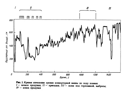 Погрешность измерений дальности составляет ±355 см, где нижний предел относится к твердой поверхности, верхний — к поверхности расплава. Для измерения уровня ванны в процессе продувки требуется применение ПЭВМ, компьютерная технология обработки отраженного сигнала, включающая его спектральный анализ и подавление помех. Такая система испытана на 150т конвертере. Информация выводится с ПЭВМ на дисплей, установленный непосредственно в пульте управления. На рис. 2 показана кривая изменения уровня конвертерной ванны. Пики на кривой в начальный момент продувки отвечают присадкам сыпучих материалов, которые при их подаче в конвертер экранируют луч локатора. Надежность информации по вспененной ванне определяется соответствием показаний системы в районе 6,5—7,0 м при выбросах и переливах шлака через горловину в процессе продувки. Система измерения уровня ванны в конвертере позволяет определять уровень спокойной ванны в конвертере; износ футеровки днища в процессе кампании; высоту расположения фурмы над зеркалом металла в зависимости от износа футеровки; уровень ванны в процессе ее осаждения после продувки и вспененной ванны при продувке с прогнозированием вероятных выбросов; глубину погружения фурмы зонда. Выполнены разработки повышения точности и надежности системы. К ним относятся использование конструкции антенны диаметром 250 мм с остронаправленным лучом шириной менее 2 град для проведения пространственной селекции отраженного сигнала; применение двухканального приемнопередающего модуля с автоматической калибровкой прибора и исключением температурных дрейфов и трендов изза старения элементов МКВблока. Разработаны также системы измерения уровня металла при непрерывной разливке в промковше, на установках ковшевого вакууми рования, в передвижных миксеровозах. Погрешность измерения в этих системах уменьшается до 8—10 мм. Перспективным направлением применения МКВтехники является также индикация наличия сыпучих материалов в конвейернотранспортных системах, с целью замены опасных радиоизотЬпных реле наличия металлургических материалов. Применение новой измерительной техники на основе МКВсредств для контроля уровня материалов и расплавов в различных емкостях й агрегатах дает возможность решать новые задачи в управлении технологическими процессами. Разработаны применительно к сталеплавильному производству системы непрерывного бесконтактного измерения уровня расплавов в конвертере, промковше МНЛЗ, при ковшевом вакуумировании, в передвижных миксеровозах, сыпучих материалов в бункерах и шахтных печах. СБОРНИК НАУЧНЫХ ТРУДОВ Черная металлургия России и стран СНГ в XXI веке. Т о м I, Москва 1994 |