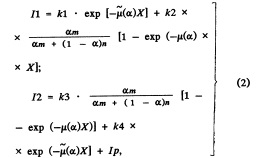 При измерениях толщины покрытий сложного ! состава, в частности двухэлементного AlZnпокрытия, необходимо дополнительно определять в реальном масштабе времени процентное содержание входящих в него компонентов. Вычислительный алгоритм в этом случае состоит в решении системы нелинейных уравнений относительно текущего значения толщины X и aдоли Zn в покрытии: