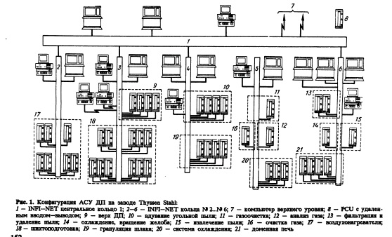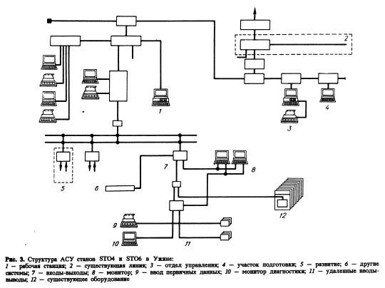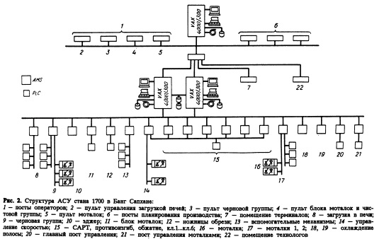 Двухуровневая система спроектирована с использованием микропроцессорных систем фирмы Ансальдо (AMS) и компьютеров серии VAX. Структура системы дана на рис. 3. Уровень базовой автоматизации включает по 1 комплекту AMS для каждого стана (управление скоростью), 1AMS для контроля размеров (стан TS04), 1AMS для накопления технические и программные средства позволяют создать системы различного назначения и масштаба для промышленности.