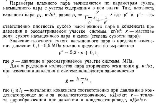 ХАРАКТЕРИСТИКА ТЕПЛОНОСИТЕЛЯ ПАРАВодяной пар в системах отопления находится во влажном состоянии щ состоит из смеси сухого насыщенного пара и капель влаги (конденсата). Такое состояние пара при наличии теплообмена с окружающей [средой и изменении давления неустойчиво. Например, при отводе теплоты пар увлажняется, а при подводе теплоты или падении давления — нарушается. В паропроводах пар из-за отвода теплоты в окружающую среду увлажняется. Капельки конденсата коагулируются и частично оседания стенках паропроводов. При транспорте такой пароконденсатной меси в отдельных узлах системы могут образоваться водяные пробки, нарушает расчетные условия ее работы. Для предупреждения этих Явлений паропроводы оборудуют устройствами для отвода попутного конденсата. В отопительных приборах происходит весьма интенсивный процесс обмена с преобразованием пара в конденсат вследствие передачи шлоты через стенки приборов в помещение. Давление и соответствующему температура теплоносителя в каждом из приборов устанавливался в зависимости от условий теплообмена и гидродинамического режима работы систем отопления. Температура конденсата в приборе, или не принимаются меры по его дополнительному охлаждению, фавна температуре сухого насыщенного пара при давлении в приборе. Конденсат из отопительных приборов поступает в конденсатопроводы, на которых, с целью предотвращения попадания в них пара, Останавливаются конденсатоотводчики. Сопротивление конденсатортводчиков значительно, поэтому давление в конденсатопроводе за конденсатоотводчиками ниже, чем в отопительных приборах. Если не врхлаждать конденсат до конденсатоотводчика, то его температура ршзится в результате образования пара вторичного вскипания в кон- щенсатопроводе. Выделение пара вторичного вскипания приводит к Существенному возрастанию потери давления в конденсатопроводе, то должно учитываться при подборе сечения конденсатопроводов путем увеличения их диаметров, а также при выборе сепаратора для отделения пара вторичного вскипания. Отмеченные выше термодинамические особенности пара как тепло» носителя должны учитываться не только при проектировании, но и при эксплуатации систем парового отопления. ![]() При выполнении тепловых и гидравлических расчетов систем парового отопления первоначально, до уточнения давления, принимают параметры сухого насыщенного пара при р — 0,175 МПа, которому соответствует температура t— 116 °С, плотность р = 1 кг/м3. Пар с указанными параметрами, обычно называют «условным». |