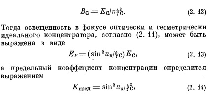 из которого видно, что он зависит лишь от апертуры (угла раскрытия) концентрирующей системы и углового размера источника излучения — Солнца.