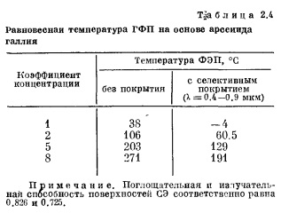 Снизить отрицательное влияние повышения температуры на КПД ФЭП при концентрации излучения можно, применяя в системе преобразования энергии СКЭС ГФП на основе GaAs, а также используя селективные покрытия на поверхности концентраторов и солнечных батарей [36, 100]. Селективные теплорегулирующие покрытия на освещаемой поверхности ФЭП пропускают солнечное излучение в области спектральной чувствительности СЭ 0.4—1.1 мкм для кремниевых ФЭП и 0.4—0.9 мкм для ГФП на основе GaAs и отражают излучение в ультрафиолетовом и инфракрасном диапазонах длин волн солнечного спектра. Покрытия, наносимые на поверхность концентратора, отражают видимую часть спектра и пропускают на подложку зеркала ультрафиолетовое и инфракрасное излучение [10]. По оценкам авторов работы [100], стоимость теплорегулирующих («горячих») покрытий для ФЭП в 50 раз выше стоимости «холодных» покрытий для концентраторов. Кроме того, «горячие» покрытия могут разрушаться и темнеть под влиянием УФизлучения, уменьшая прохождение видимой части излучения к ФЭП, в то время как «холодные» покрытия исключают попадание УФизлучения на поверхность СБ. Таким образом, в фотоэлектрических системах преобразования энергии СКЭС с концентраторами солнечного излучения предпочтение, вероятно, должно быть отдано селективным покрытиям, наносимым на отражающую поверхность зеркала.