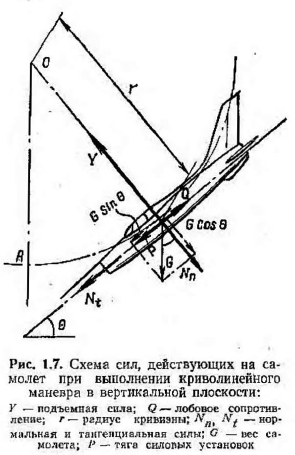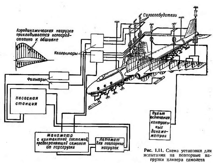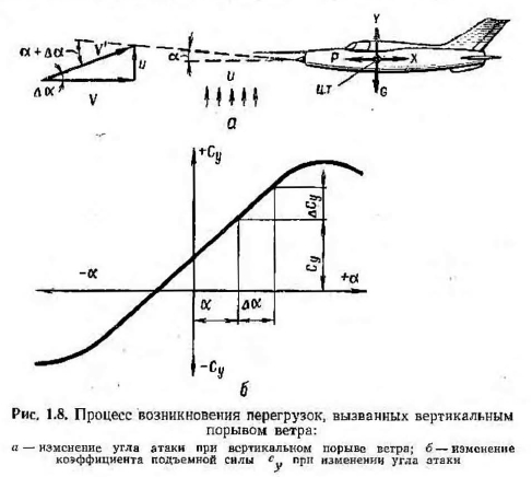 ОБЩАЯ ОЦЕНКА ЭКСПЛУАТАЦИОННОЙ ПРОЧНОСТИ САМОЛЕТАДля безопасности полетов самолетов в процессе их проектирования, производства и эксплуатации необходимо обеспечить прочность элементов их конструкции в условиях воздействия всей совокупности эксплуатационных нагрузок и других разрушающих факторов (температура, коррозия), т. е. обеспечить эксплуатационную прочность самолетов. ![]() ![]() ![]() ![]() Аналогично можно вывести формулу для величины перегрузки при выполнении самолетом маневра в горизонтальной плоскости. Кроме маневренных нагрузок, на элементы конструкции планера действуют нагрузки, вызванные порывами ветра. В атмосфере всегда имеются воздушные потоки различных направлений, которые Обусловливаются рельефом местности, облачностью, неравномерным нагревом воздуха и другими причинами. Перегрузки, вызванные порывами от восходящих и нисходящих потоков, могут достигать величины пу = + 5ч—3. С учетом этих перегрузок в основном и рассчитываются на прочность элементы конструкции планера тяжелых (не маневренных) самолетов. Предположим, что на самолет, находящийся в горизонтальном полете и движущийся со скоростью V, подействовал вертикальный порыв ветра со скоростью и (рис. 1.8). В результате поддува скорость потока изменитея по величине и направлению и будет равна ![]() Следовательно, подъемная сила изменится в основном вследствие дополнительно образовавшегося прироста подъемной силы в результате увеличения угла ![]() ![]() ![]() Аналогично можно было бы рассмотреть возникновение дополнительных перегрузок от нисходящего, а также от горизонтального порыва ветра. Следует иметь в виду, что нагрузки элементов конструкции планера самолета во многом зависят от характера выполняемого полета. Увеличение скоростей полета современных самолетов привело к увеличению нагрузок, вызванных нагревом конструкции. Источниками нагрева самолета могут быть двигательные установки, выхлопные газы, атмосферная и солнечная радиации и аэродинамический нагрев, обусловленный торможением воздушного потока о поверхность самолета во время его полета. Одновременно с нагревом происходит рассеивание тепла вследствие его излучения самолетом. Наиболее существенным является аэродинамический нагрев, так как он охватывает всю поверхность самолета и увеличивается с ростом скорости полета. Остальные источники нагрева имеют обычно местное значение, а солнечной и атмосферной радиациями в связи с их малыми значениями можно пренебречь до высоты 50 км. Рассмотрим более подробно аэродинамический нагрев самолета. Известно, что абсолютная температура пограничного слоя Г в точке полного торможения воздушного потока равна ![]() При полете у земли с числом М~3,0 температура Т и точке полного торможения приблизительно равна 400° С. Следовательно, в результате значительного нагрева элементов конструкции планера при полетах на больших числах М может произойти снижение их проч- постных характеристик. Помимо маневренных нагрузок и нагрузок, вызванных порывами ветра или нагревом конструкции, на элементы конструкции планера современных самолетов действуют еще значительные нагрузки, возникающие при взлете и посадке. Например, на шасси действуют силы реакции земли, которые возникают при взлете и посадке самолета, а также при его движении по аэродрому. Величина сил и их н